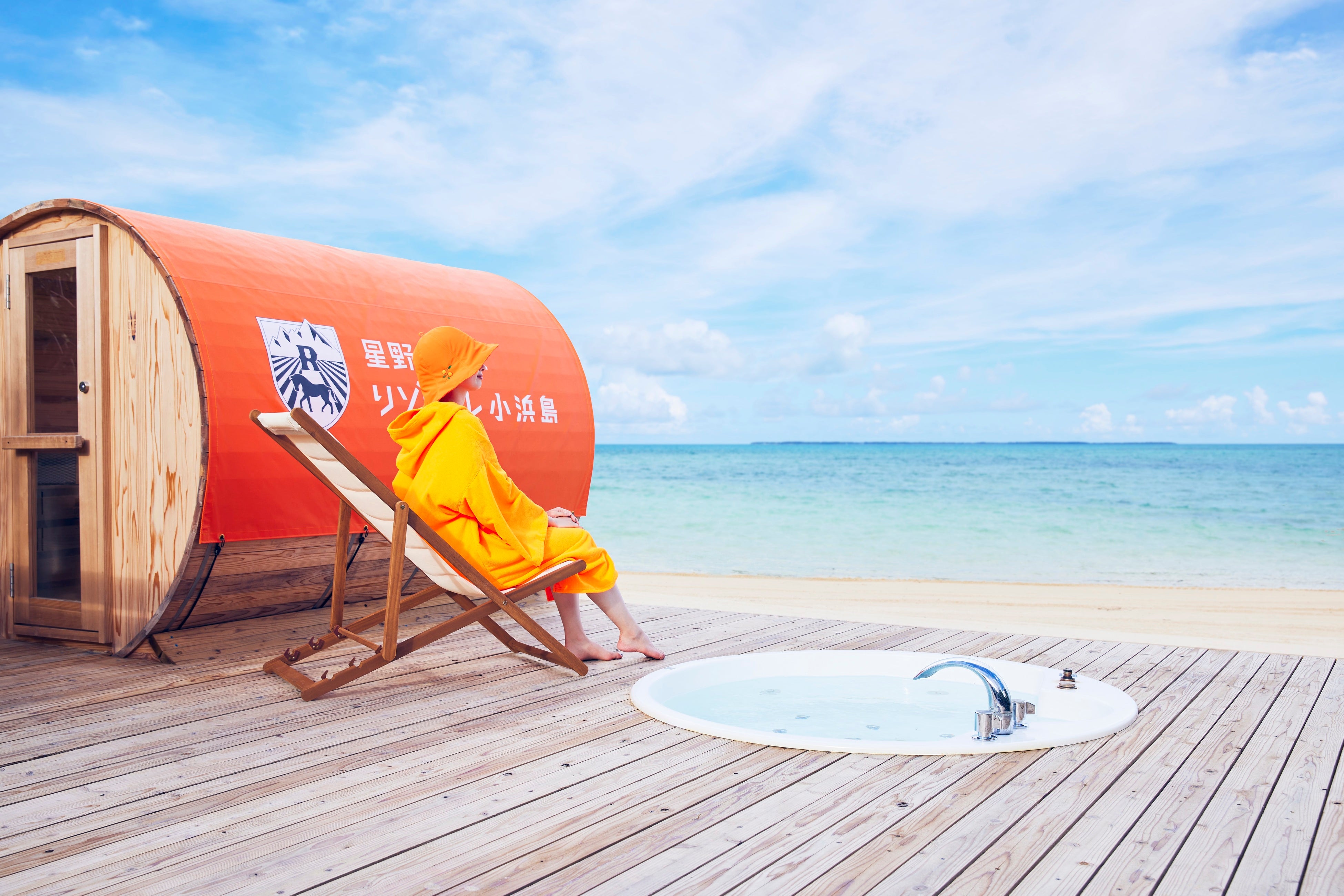 ホテルに隣接するビーチに佇むバレルサウナでは、セルフロウリュを備えた本格的なサウナを体験することができます。バレルサウナに配された大きな窓からはコバルトブルーの絶景を堪能。周囲を国内最大の珊瑚礁「石西礁湖」に囲まれた小浜島のロケーションだからこそ叶う、絶景とともに楽しむサウナです。