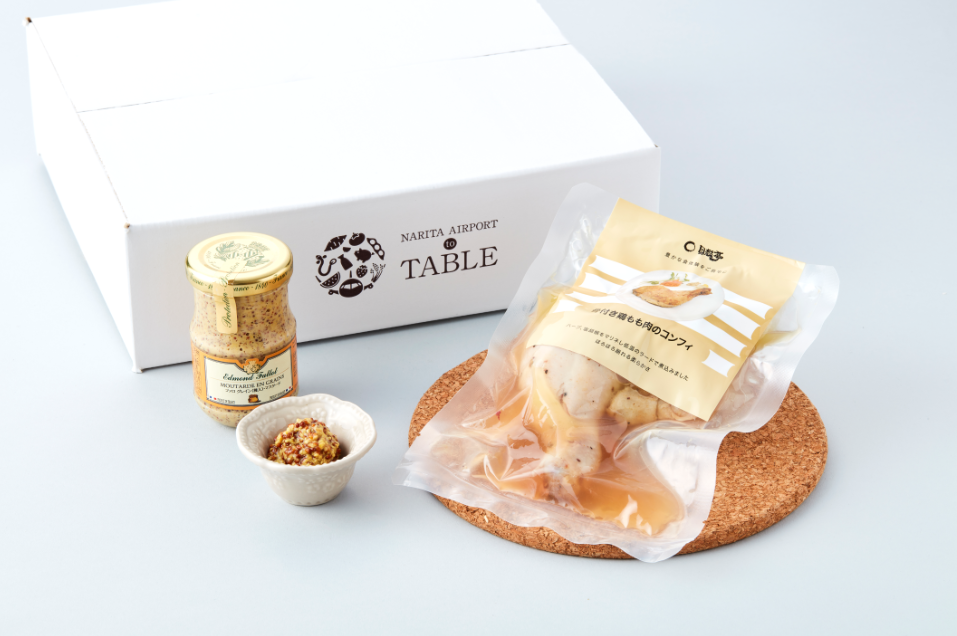 今回は、「骨付き鶏もも肉のコンフィ」「フランス産粒マスタード」を基本セットとし、WORLD BEER AWARDS2023セゾン部門で金賞を受賞した成田空港オリジナルクラフトビール「成田空港エール(セゾン)」が付いたセットもご用意しております。