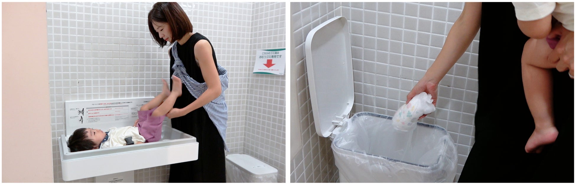 ③乳幼児と一緒でも安心!おむつ台と専用ゴミ箱完備!