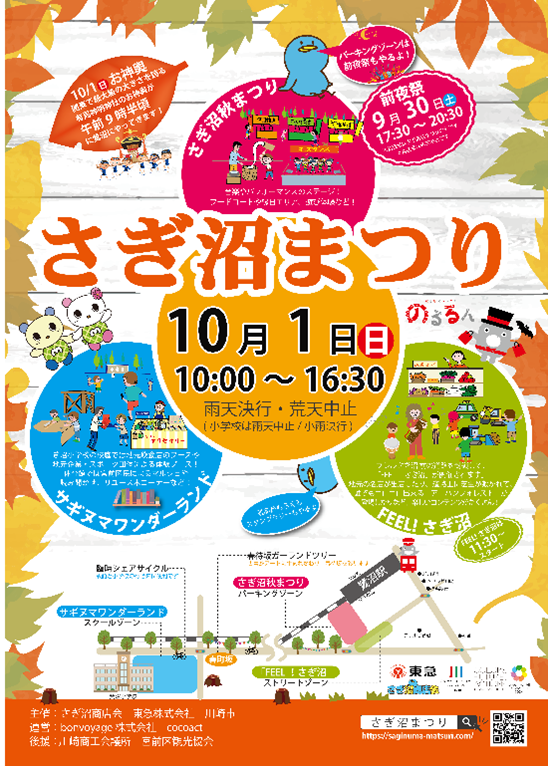 今年度は、鷺沼エリアの更なる活性化に向け、東急、川崎市、さぎ沼商店会の3者が連携し、鷺沼駅周辺エリアを周遊しながら楽しめるイベント「さぎ沼まつり」を9月30日(土)、10月1日(日)の2日間で開催します。