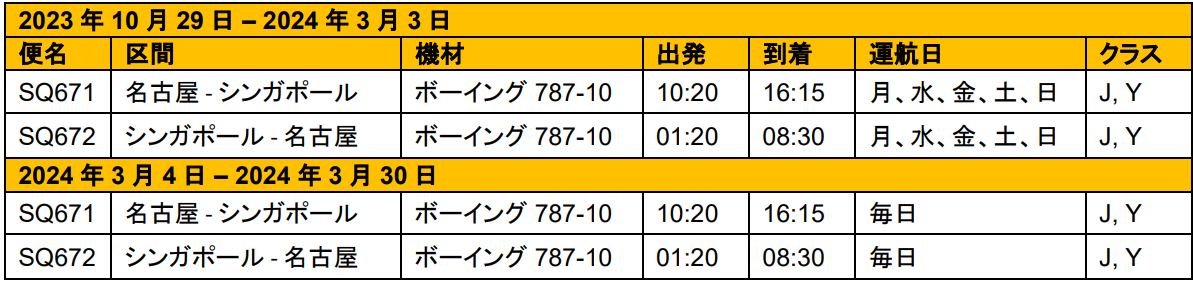 シンガポール発名古屋行きは週 5 便に増便します。さらに2024年3月4日よりデイリー運航となり、新型コロナウイルス感染拡大前のレベルまで回復します。