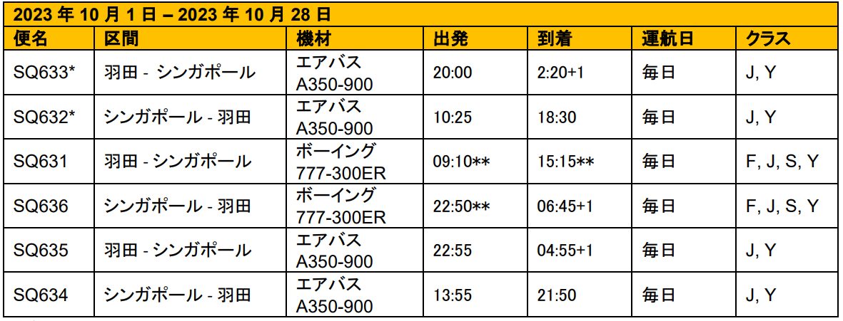 **2023年10月28日: SQ636 はシンガポールを22:45に出発し羽田に6:45(翌日)到着します。