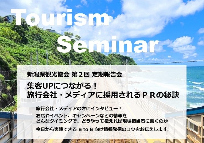 公益社団法人新潟県観光協会では、年4回ほど、県内の事業者・市町村・市町村観光協会等を対象とし、聞いてすぐに実践できるセミナーや当協会事業成果の共有を行なう報告会を実施しております。