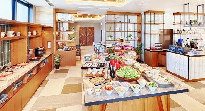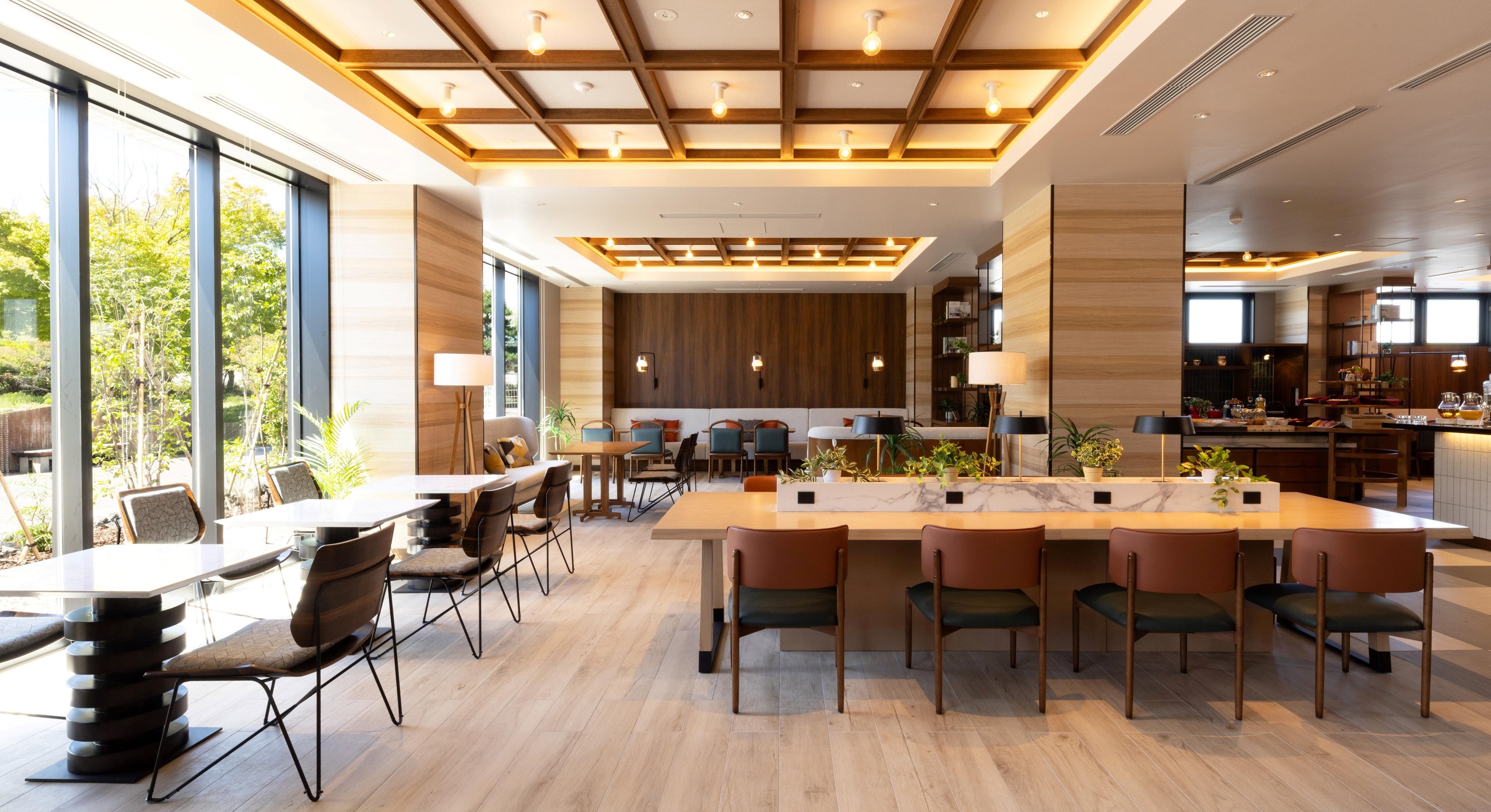 駅前広場に面した大きな窓から光が差し込む、明るく開放的な空間。朝食からディナーまでご利用いただけるオールデイダイニングです。