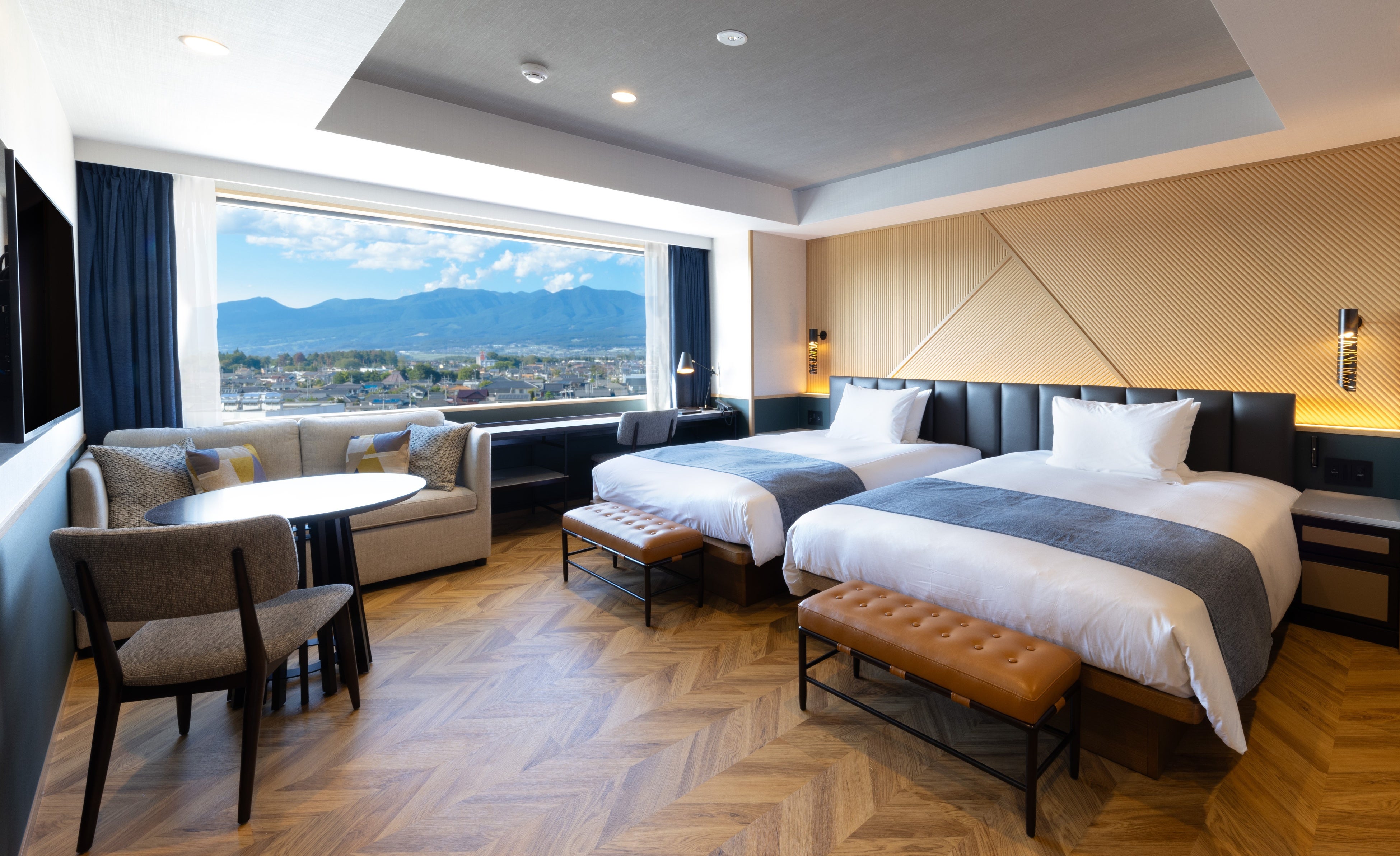 コンセプトは、「私たちが提供するのは“記憶に残る時間”です」と掲げ、北に浅間山、南に八ヶ岳連峰、東に荒船山などの山並みに囲まれ、南北に千曲川が流れる美しい景色を臨めるロケーションと佐久平の自然から着想した館内デザインや地元食材を使った料理で、ビジネスやレジャーで当地を訪れるお客様が佐久平の良さを満喫できるような、これまでにない宿泊体験を提案します。