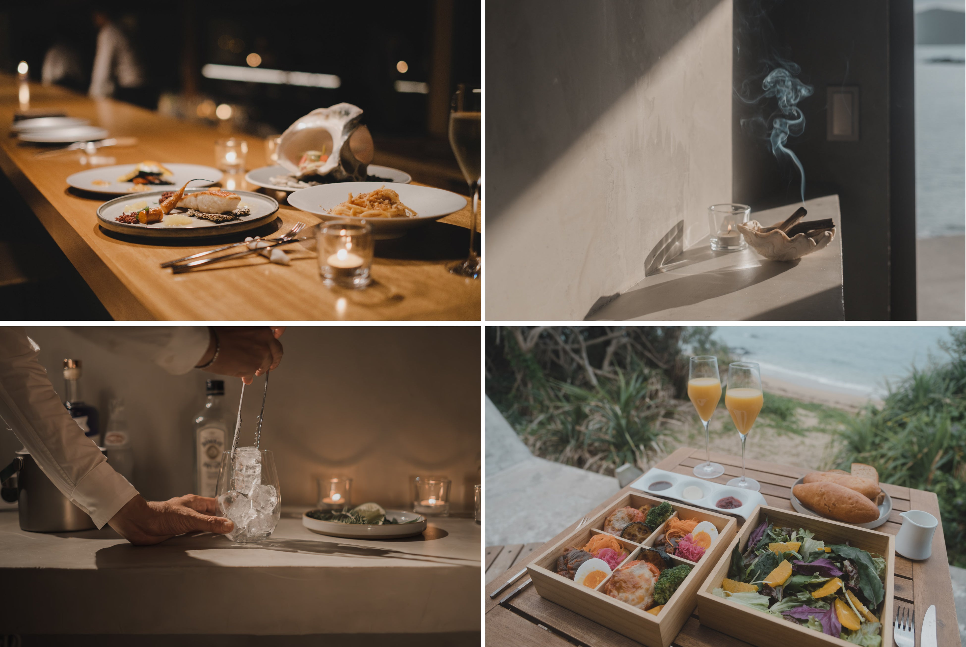 柔らかな朝日で目を覚まし、お腹が空いたらご飯を食べる、そんな当たり前のリズムがなかなか普段は叶わないもの。この滞在では、朝のひと時も大事に過ごしていただけるよう、時間を気にせず好きなタイミングで朝食を楽しめるインルームブレックファストをご用意します。テーブルと椅子を持ってテラスや砂浜で食べるなど、愉しみ方は自由です。
