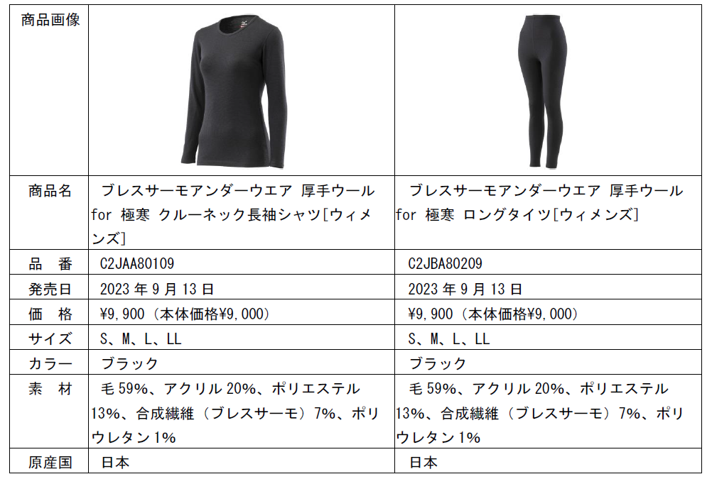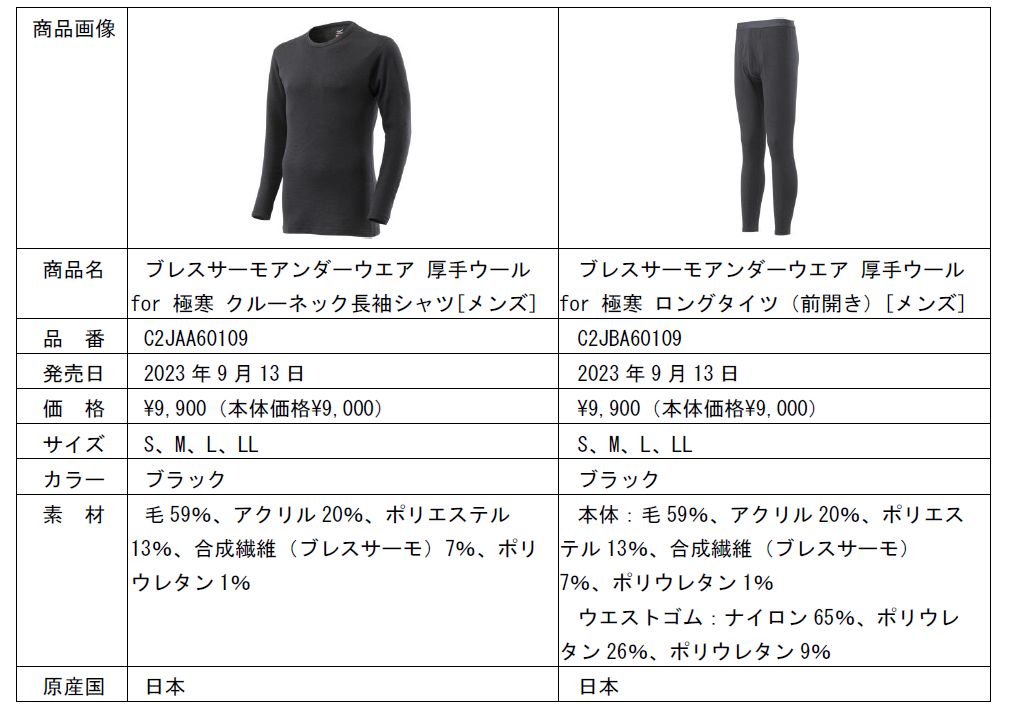 ミズノは、独自の吸湿発熱素材『ブレスサーモ』採用商品の発売30周年を記念して、従来のブレスサーモ品と比較して最大温度差が約3.3℃のミズノNo.1の発熱力※1と極上の着心地を両立したプレミアムモデル「ブレスサーモアンダーウエア 厚手ウール for 極寒」をミズノ公式オンライン、全国のミズノ品取扱店で9月13日に発売します。