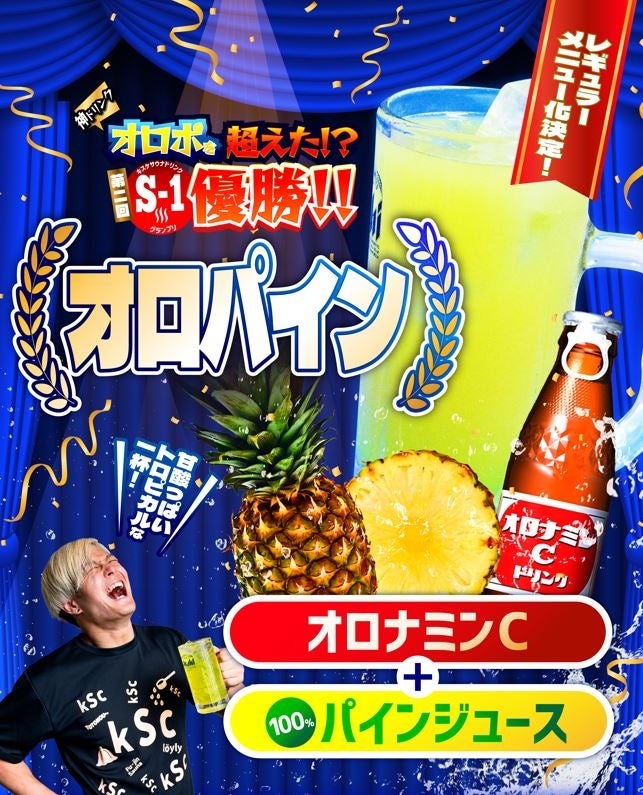 「キスケ S-1グランプリ」では、全国のサウナファンの皆さまから『オロポ』を超える次世代のサウナドリンクのレシピアイディアを募集しました。期間中に172件のレシピの応募があり。厳正な審査により5品を選び、これらの商品は「伊予の湯治場 喜助の湯」と「しまなみ温泉 喜助の湯」の2店舗で販売されました。7月7日から8月31日までの販売期間中、販売杯数が最も多かった「オロパイン」が見事、第2回 S-1グランプリ優勝に輝きました。