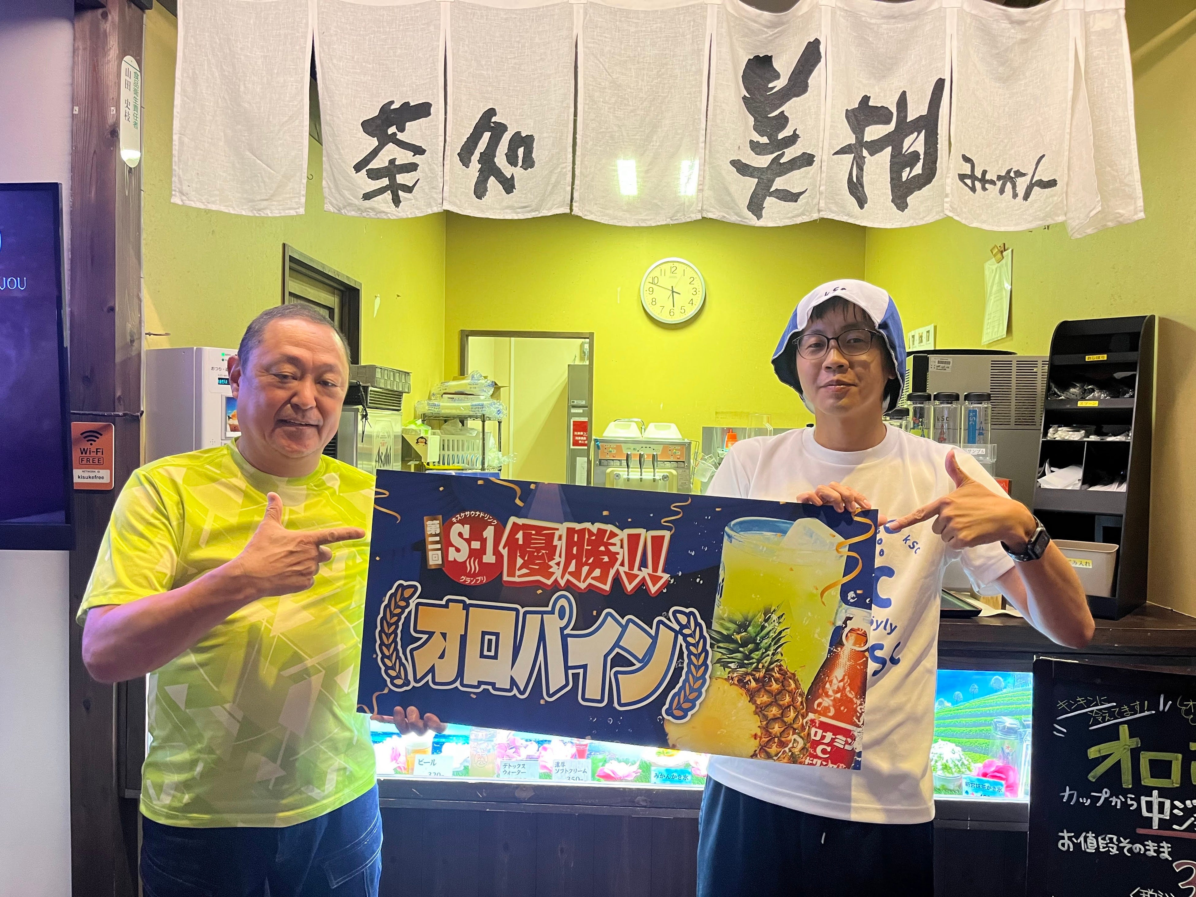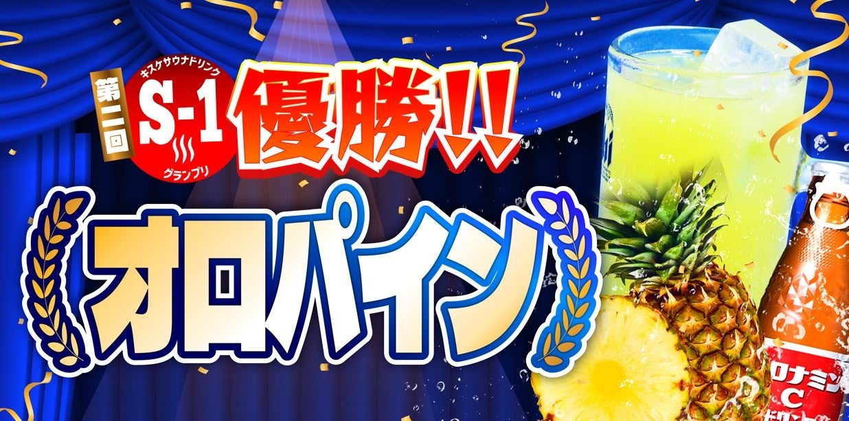 「キスケ S-1グランプリ」では、全国のサウナファンの皆さまから『オロポ』を超える次世代のサウナドリンクのレシピアイディアを募集しました。期間中に172件のレシピの応募があり。厳正な審査により5品を選び、これらの商品は「伊予の湯治場 喜助の湯」と「しまなみ温泉 喜助の湯」の2店舗で販売されました。7月7日から8月31日までの販売期間中、販売杯数が最も多かった「オロパイン」が見事、第2回 S-1グランプリ優勝に輝きました。
