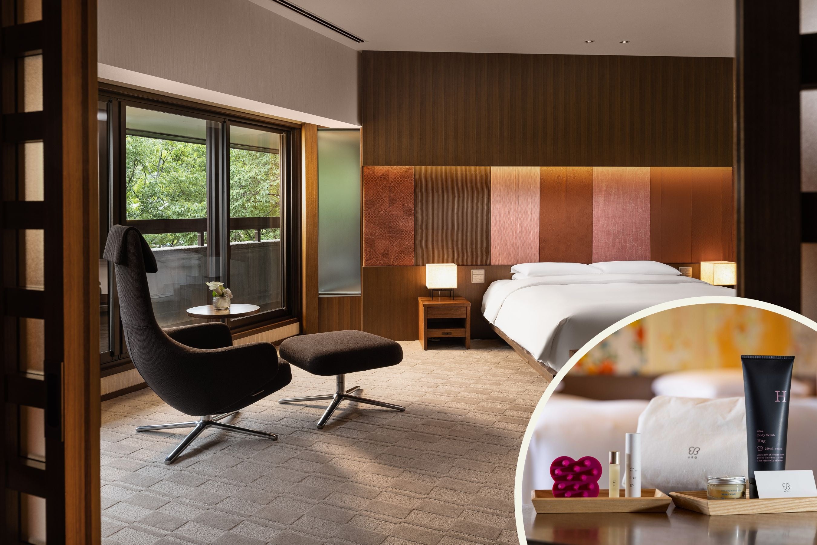 四季折々の美しい日本庭園の情景が客室と一体となる1階のリージェンシーエグゼクティブスイート、もしくはホテル最上階に位置し、心地よい風を感じることのできるバルコニー付きのKYOTOスイート、リージェンシースイート、またはデラックスバルコニー限定のプランです。客室は着物の古布を使用したヘッドボードや行灯をイメージしたランプシェードなど、日本らしさを表現したコンテンポラリーデザインが特徴で、バスルームには大きな木製(ヒバ)の浴槽が備わっています。日常の喧騒を離れ、落ち着きのある上質な空間で、自分らしさを整え、前へ進む活力をチャージするひとときをご提案いたします。
