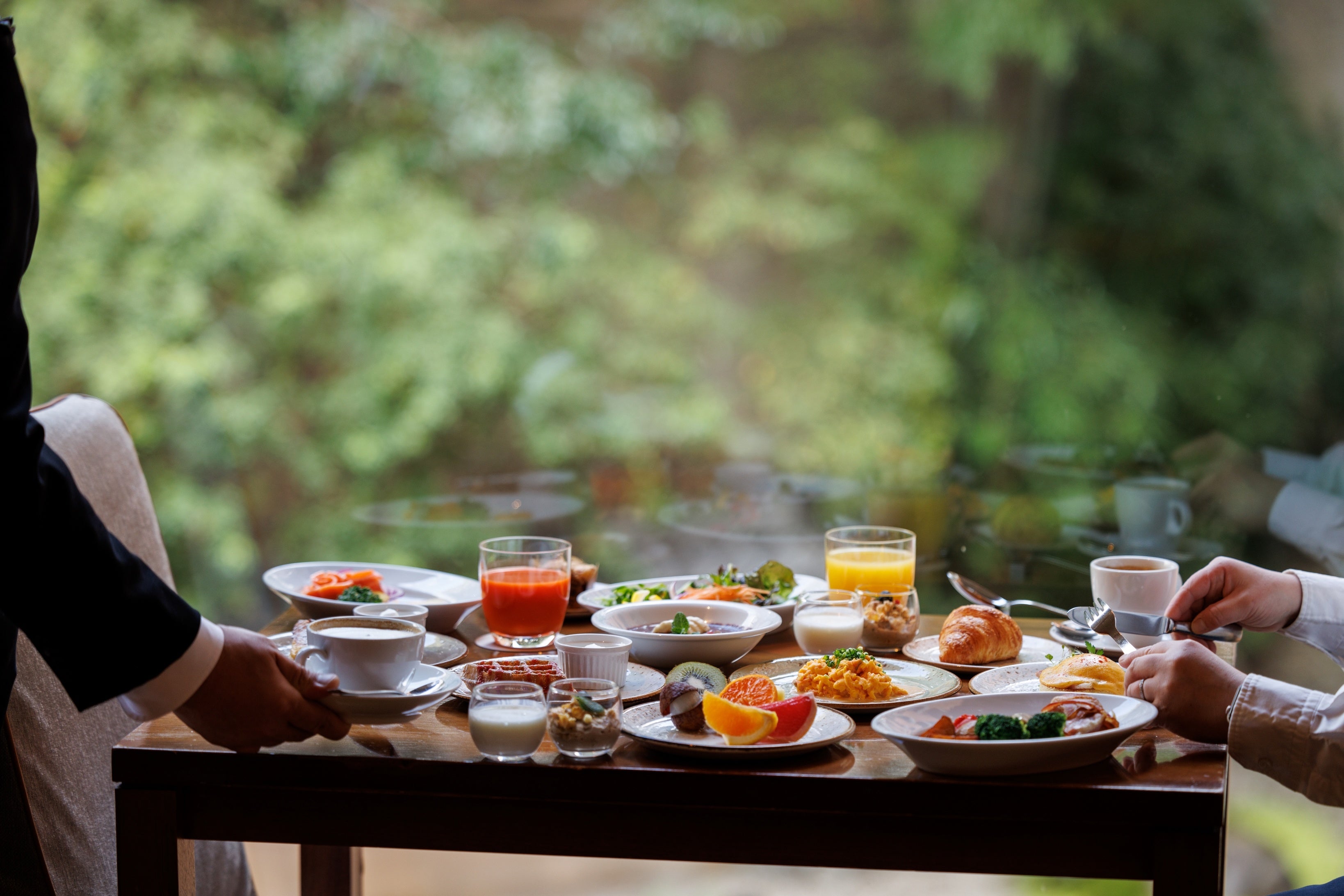 新鮮な野菜やフルーツ、薪のオーブンで炙ってお出しするハム、毎朝、ホテルのベーカリーで焼き上げる絶品クロワッサンなどバラエティ豊かなお料理をブッフェスタイルでお楽しみください。卵料理は、ご注文受けてから調理して出来立てをお持ちします。