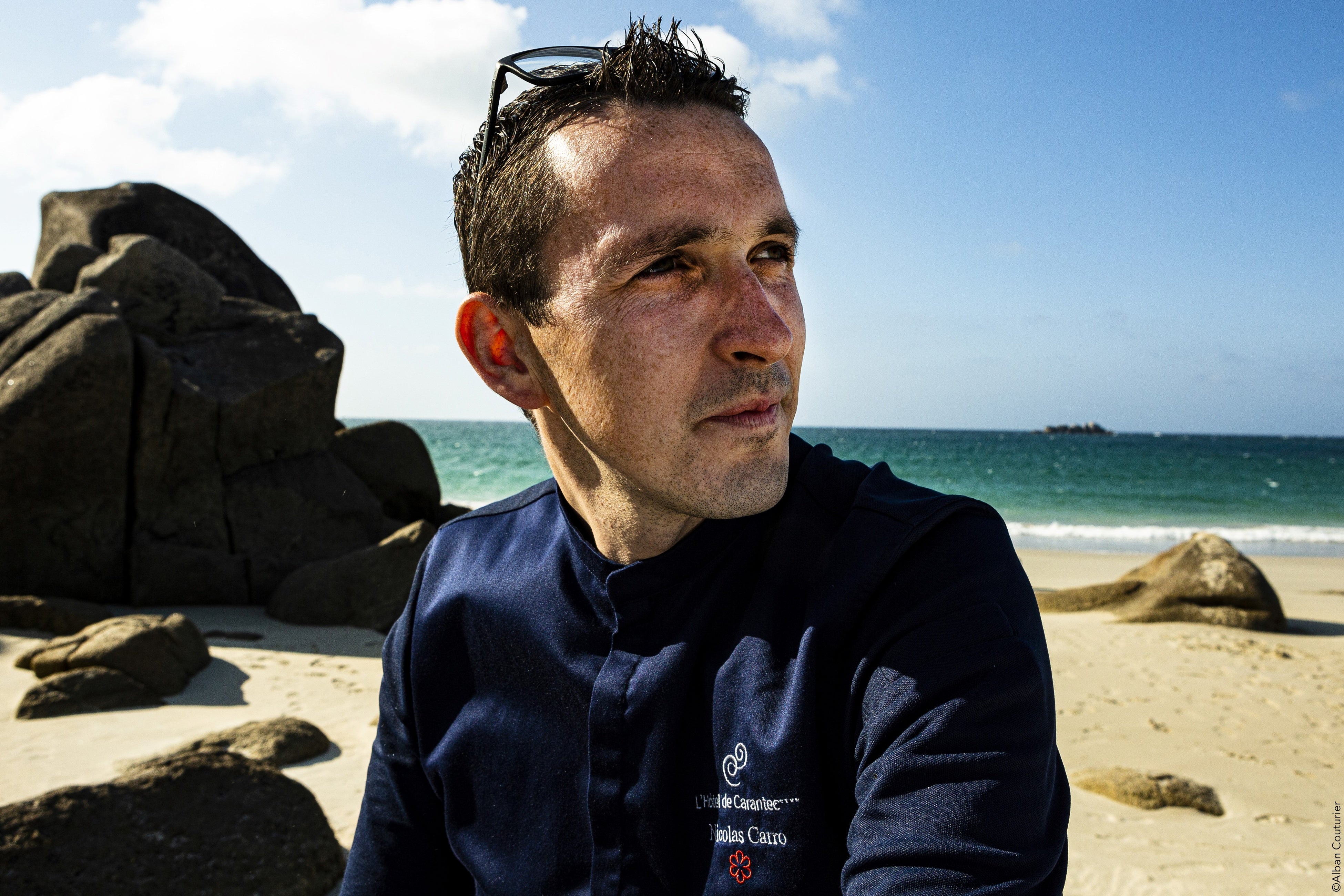 そんなブルターニュ地方の海沿いに位置する、歴史ある4つ星ホテルの「Hôtel de Carantec(オテル・ドゥ・キャランテック)」のメインダイニングの料理長を担う二コラ・キャロ氏は、地産地消をモットーに生産者とのコミュニケーションを大切にするとともに、環境配慮への取り組みにも力を入れているシェフの一人です。