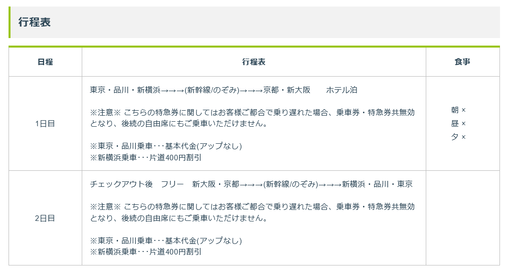 Point2.京都駅発着は新大阪発着に比べると600円お得です。