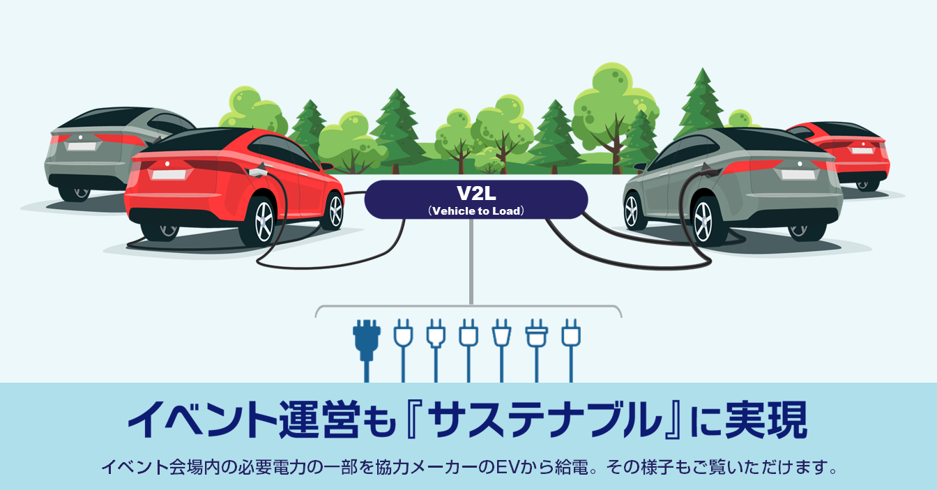 また、前回と同様にイベント会場内で使用する電力をEVから供給する”V2L給電”も実施いたします。ご来場のお客さまへ、EVが持つ電力蓄電の実力を体感いただきながら、サステナブルなカーライフイベントならではの、未来へとつながる持続可能な社会を考えるきっかけを作ってまいります。