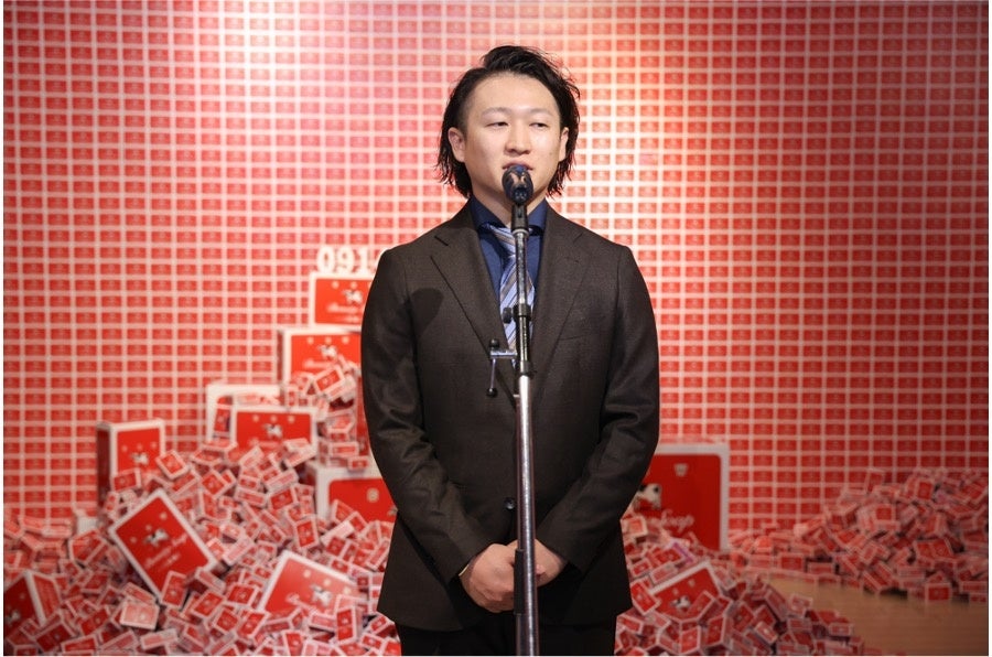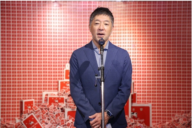 まず、牛乳石鹸共進社株式会社 代表取締役社長 宮崎 悌二が登壇し、開催に至った背景について「看板商品である赤箱の発売90周年がAWA-YAのスタート、赤箱の魅力を知ってもらうイベントとして開催しました」とコメント。また、関東初開催の場に横浜を選んだ理由については、「横浜は、国内で固形石けん工場発祥の地と言われており、関東の赤箱ファンからのご要望を受けて開催しました。香り、匂い、肌へのやさしさ、こだわりの製法などを学び、体験いただきながら赤箱の魅力を皆様に知っていただきたい」と、開催への想いを語りました。