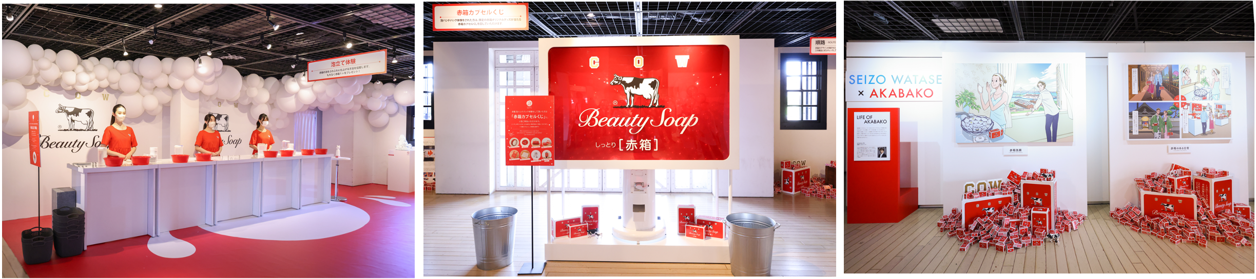 そこで、「赤箱 AWA-YA」は、この”赤箱を洗顔に使う女性が増えている”ことを背景に、より多くの人に赤箱の新しい一面を知っていただきたいという想いから開催しているイベントです。初開催となった2018年は京都、続く2019年は福岡で開催。毎年、初日から行列ができるほどのご好評をいただいており、過去3回の来場者は合計で2.6万人超にのぼりました。