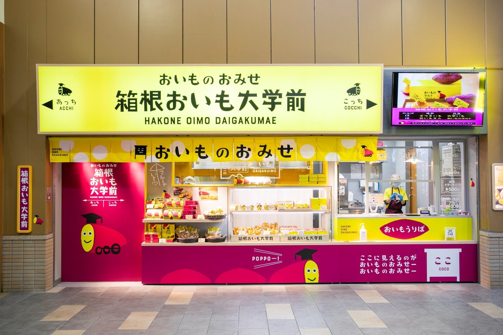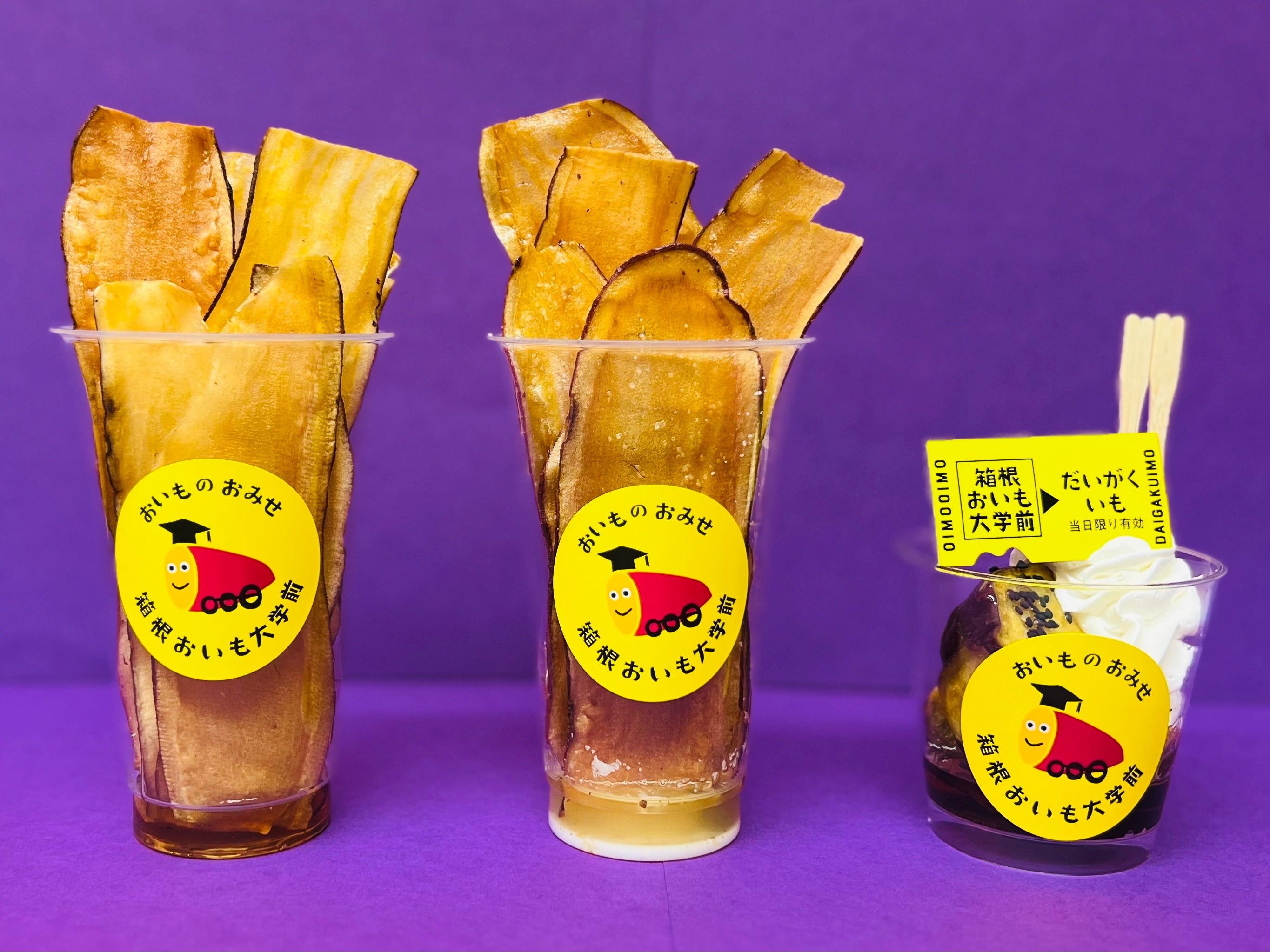 箱根湯本駅構内にある、おいものおみせ「箱根おいも大学前」では、当店の売上上位を誇る「おいもちっぷ」と「特製メープルみつ大学いもカップ」のハーフサイズを発売します。