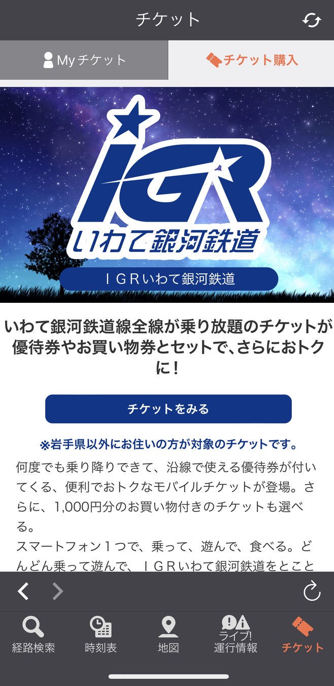 ジョルダン社提供「乗換案内」アプリの利用者登録を行った岩手県外在住者、または訪日外国人に限り発売します。