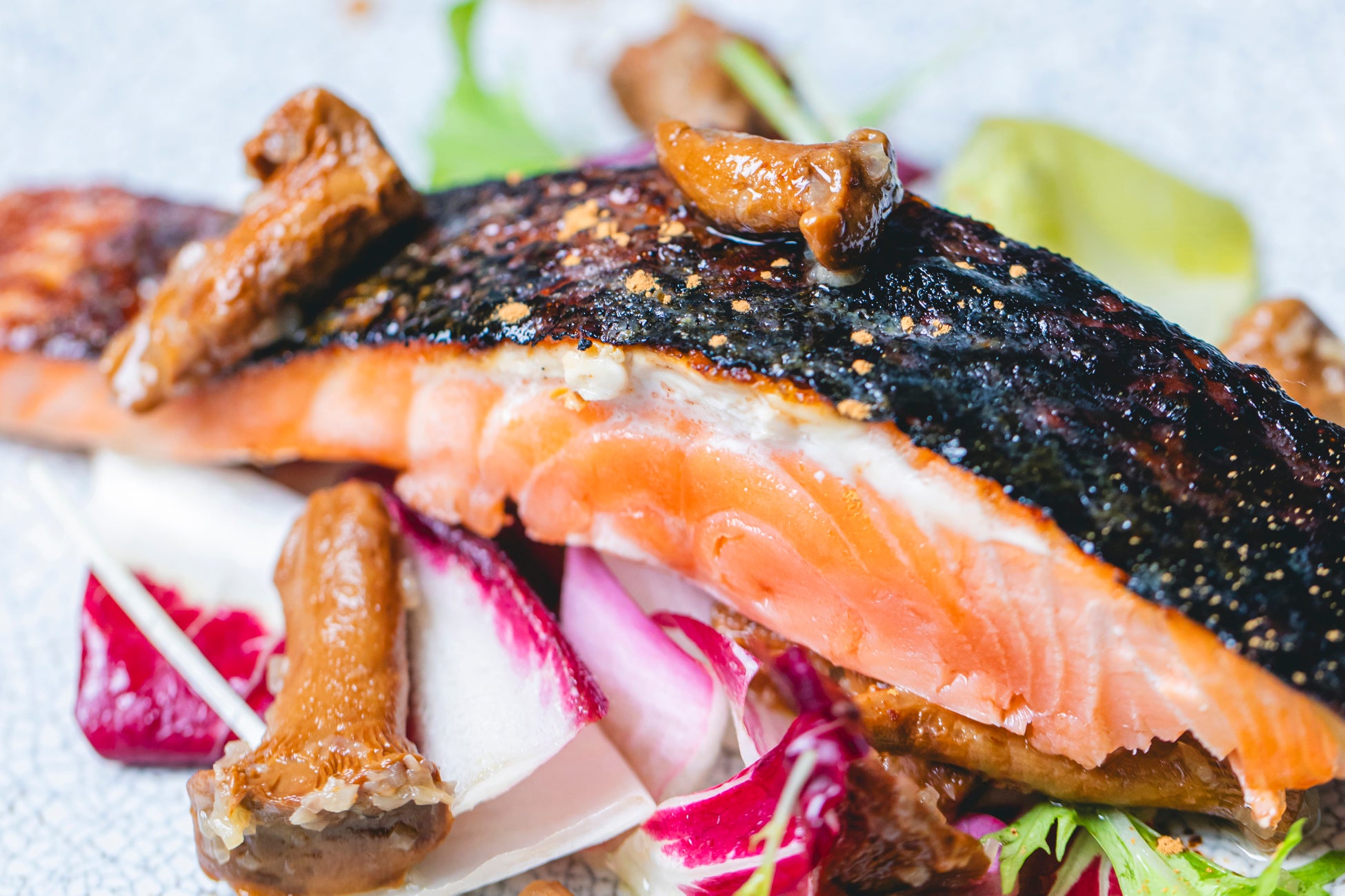 ・キャンディサーモン ジロール茸のピクルス シナモンカッシア