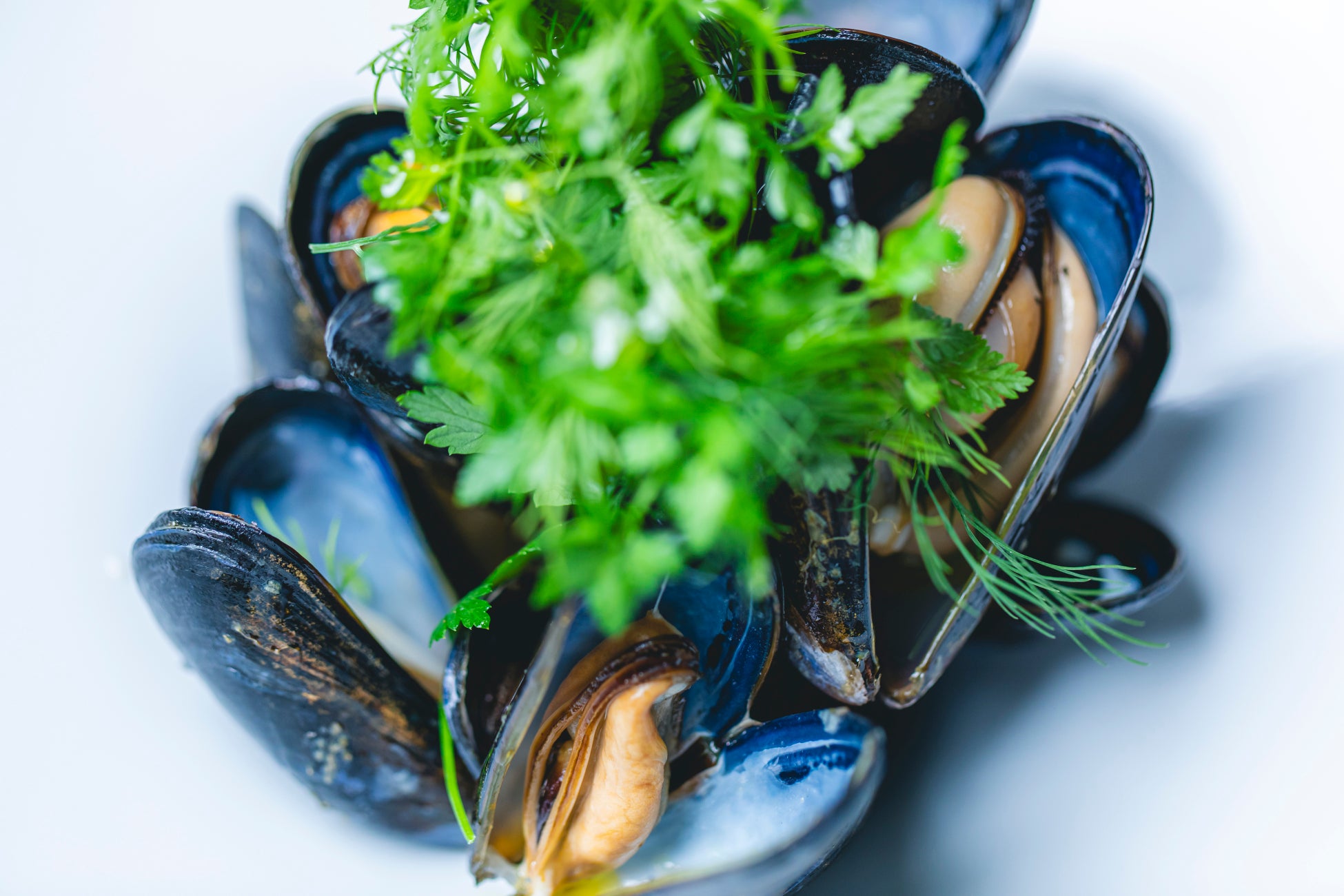 ・カナダ産 ムール貝の白ワイン蒸し セロリとヨーグルトのソース