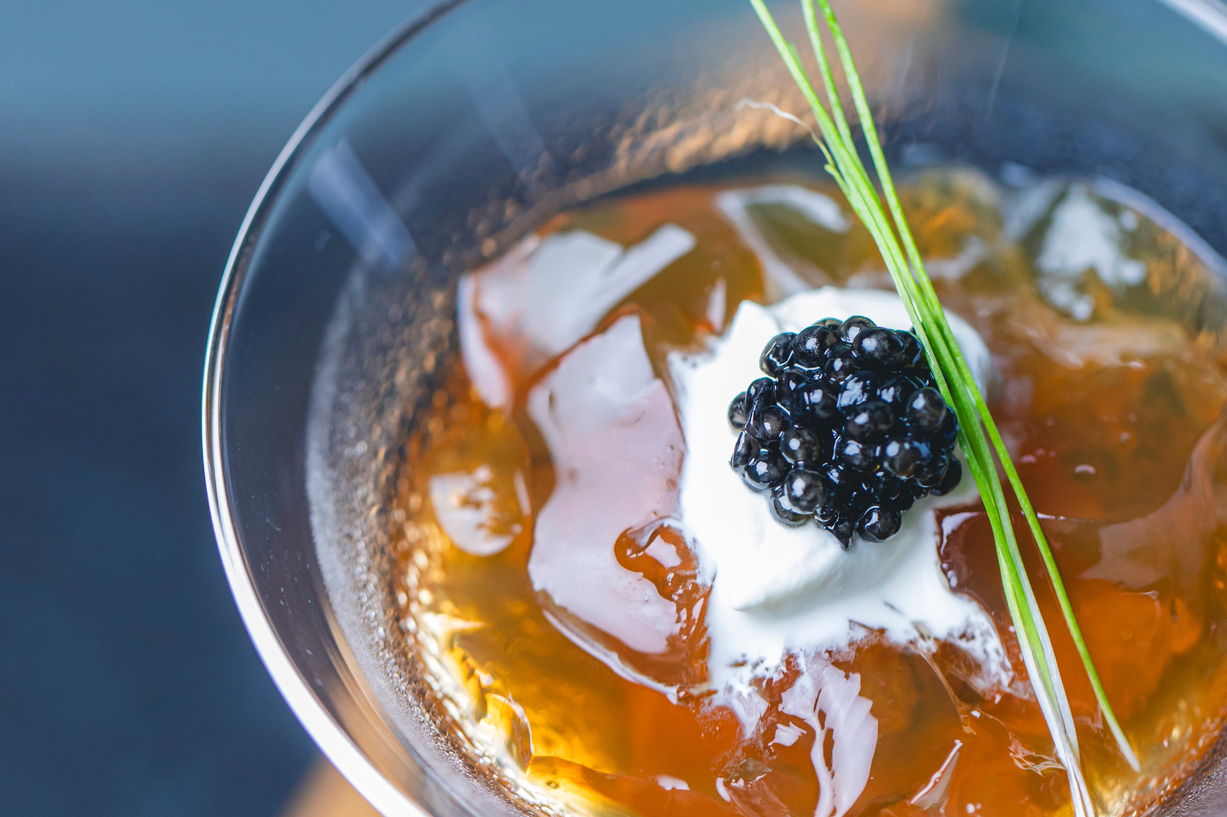 ・焼き茄子 ラングスティーヌのコンソメジュレ キャビア