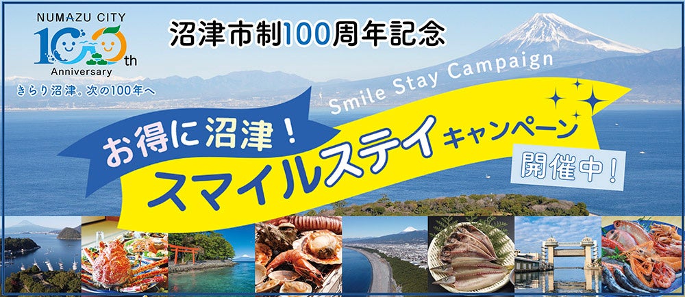 沼津市は市制100年を記念し、秋の行楽シーズンに向けた「お得に沼津!スマイルステイキャンペーン」を実施する。このキャンペーンは旅行予約サイト「じゃらんnet」から宿泊クーポンを取得し、サイト内で利用対象の宿泊施設を予約する際に使用する事でだれでも利用できる。