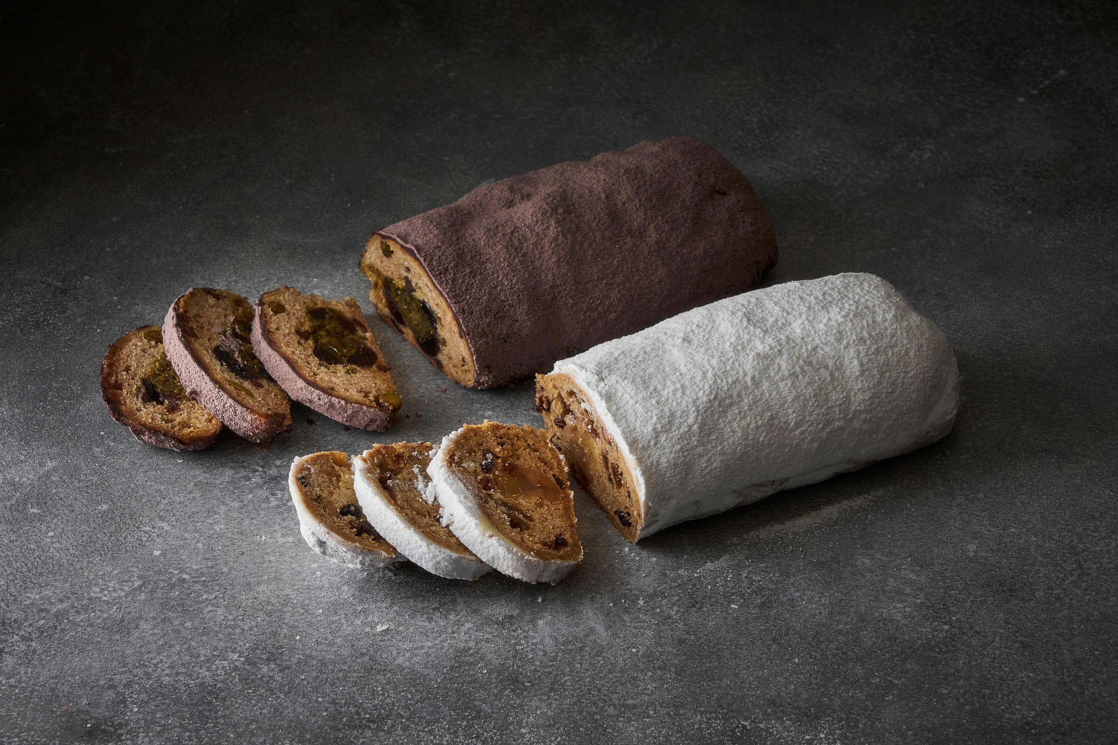 マカダミアナッツ、ヘーゼルナッツ、アーモンドの3種のナッツとフルーツの生地に、独自にブレンドした挽きたてのウィンタースパイスを加えた「シュトレン」は、素材の風味を引き出し、ナッツとフルーツ、生地の一体感が特徴です。