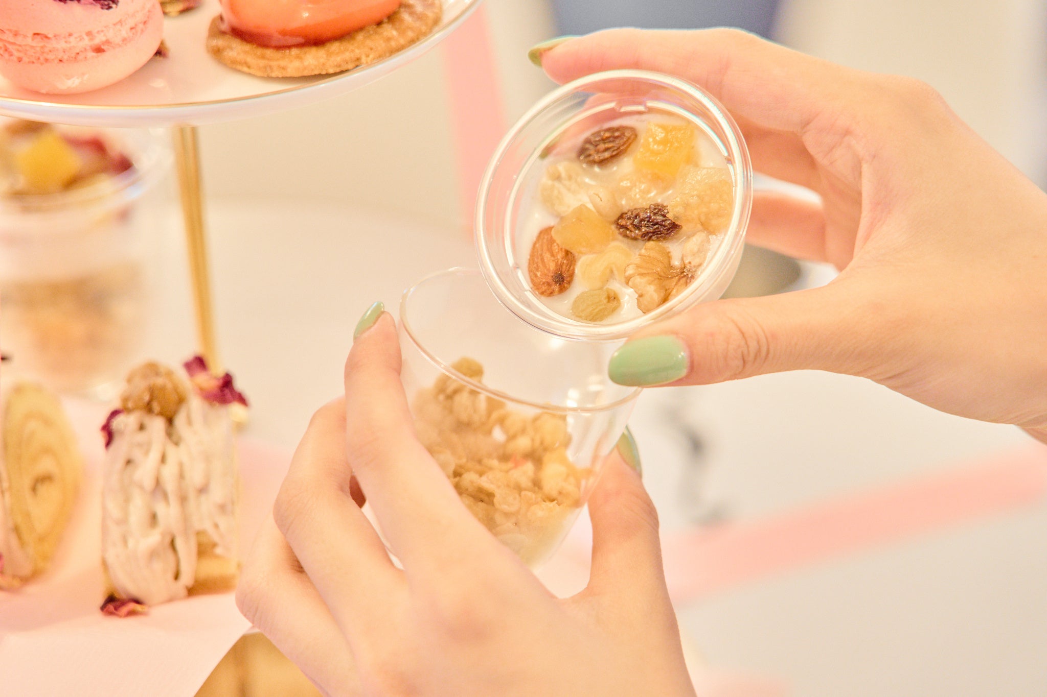 アフタヌーンティーメニューには、旬なフルーツのりんごをモチーフにした真っ赤なアップルムースケーキを始め、栗やローズドライイチジクをふんだんに使用したスイーツをご用意。