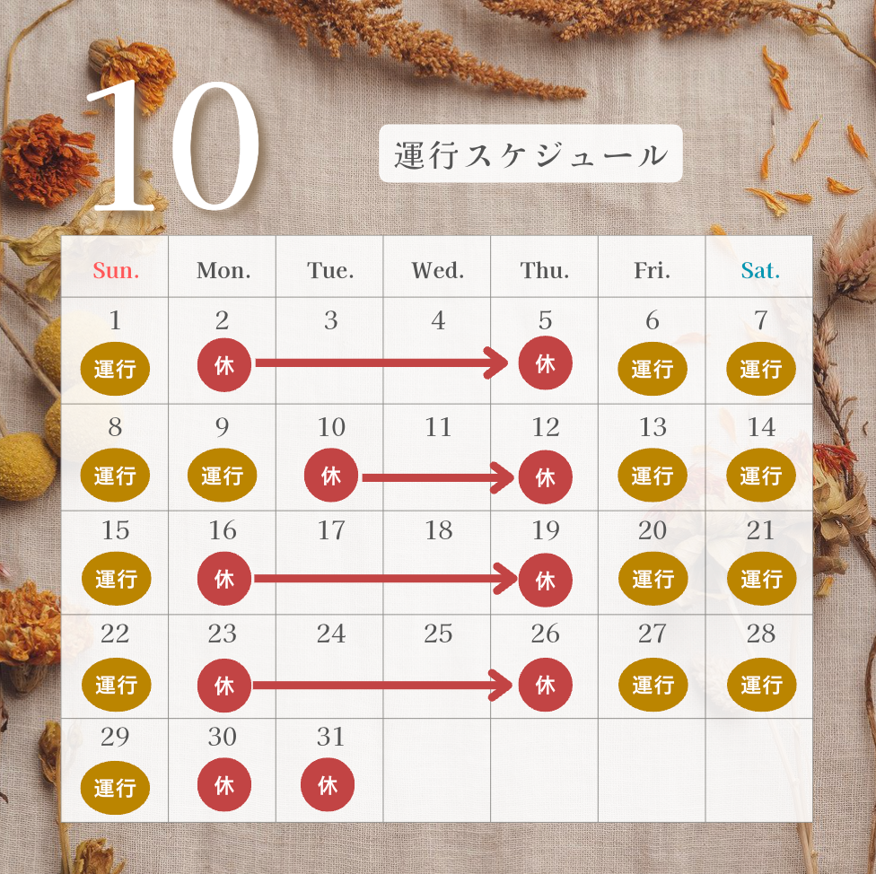 そして10月は秋先取りツアーとしてオータムアフタヌーンティーバスツアーの運行開催をいたします。
