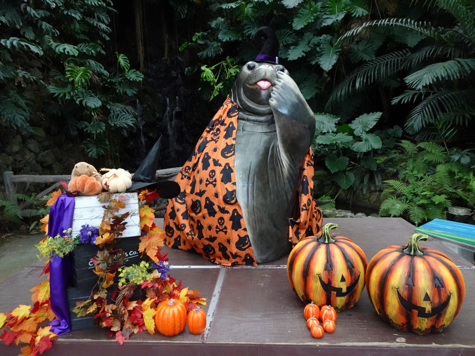 また、水族館の人気フォトスポット「ミナミゾウアザラシの丸子」もハロウィーンバージョンとなっております。