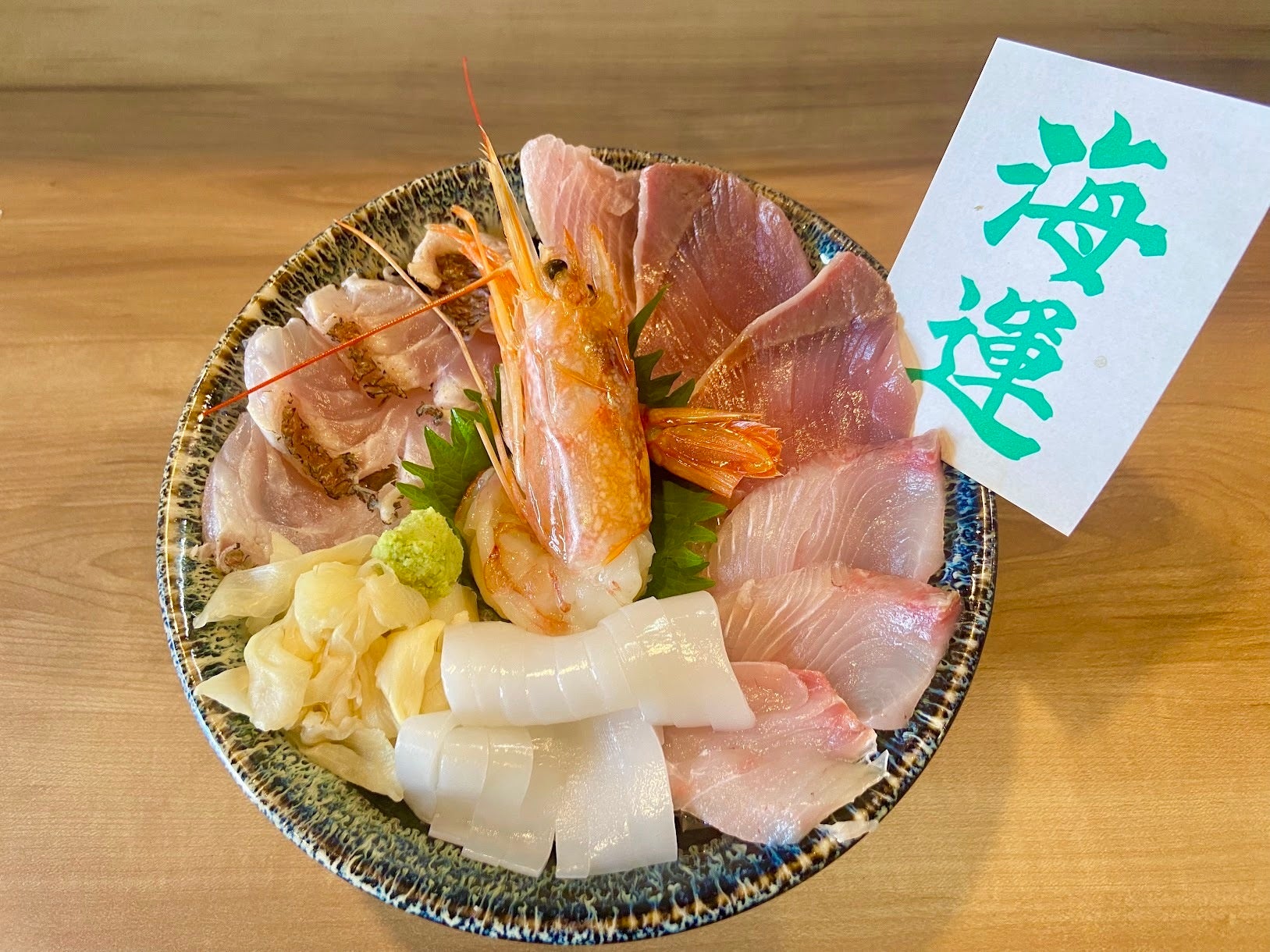 漁師のオーナーが大田市の海から獲ってきた新鮮な魚介でつくる、海鮮丼や定食、刺身などを提供します。