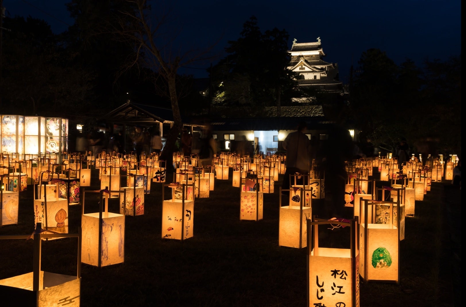 松江城や塩見縄手周辺がライトアップされ、夜の散策路が美しく演出されます。市民の手作り行灯がゆらめき、松江ならではの水と光の幻想的な景観が楽しめます。