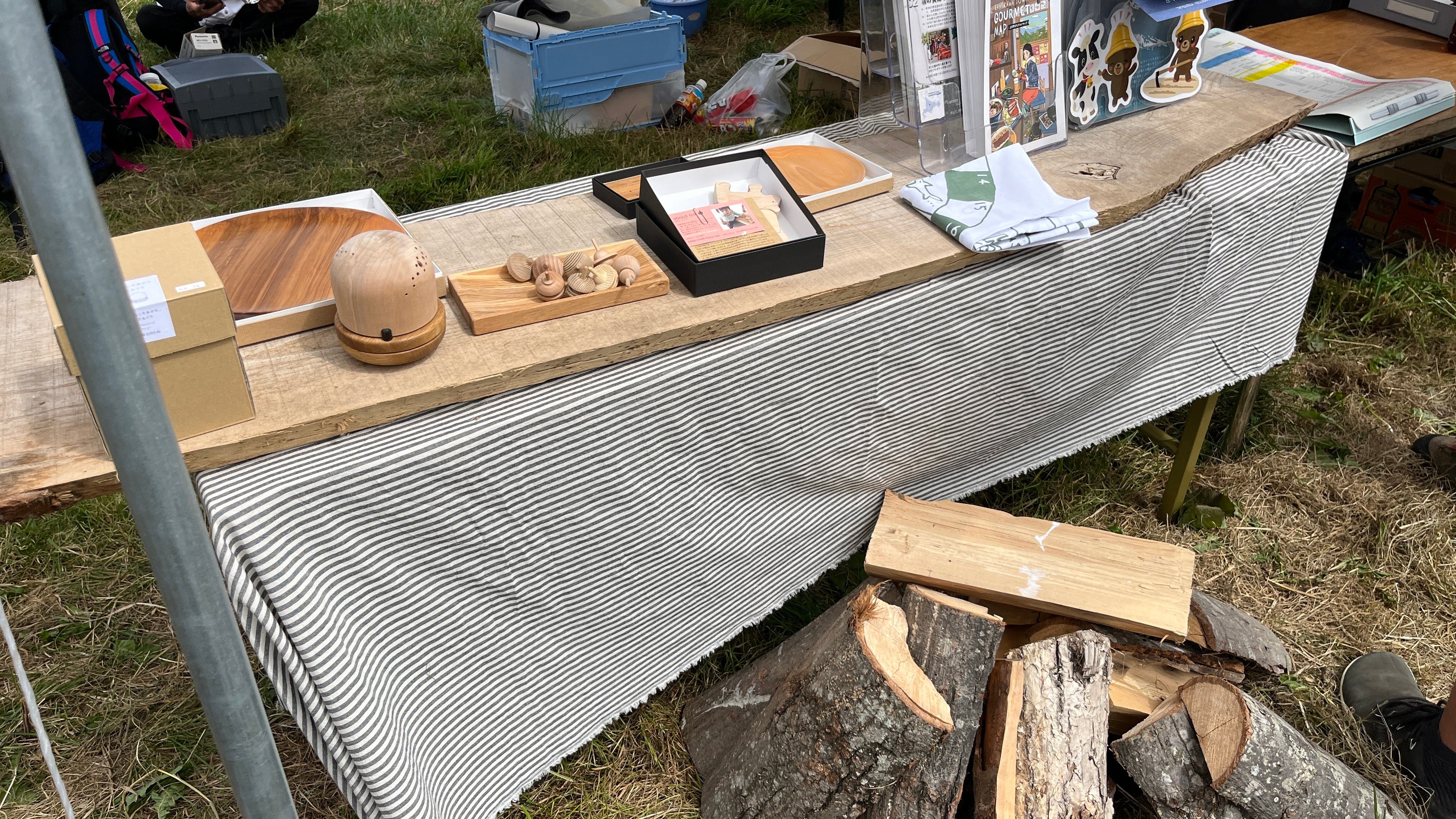 上川町産材を使用した木工製品も展示され、町内外の方々が上川町の豊かな森林資源に興味を持つきっかけとなりました。今回イベントに参加した子供たちには上川町産材を使用した木製のコマがプレゼントされていました。