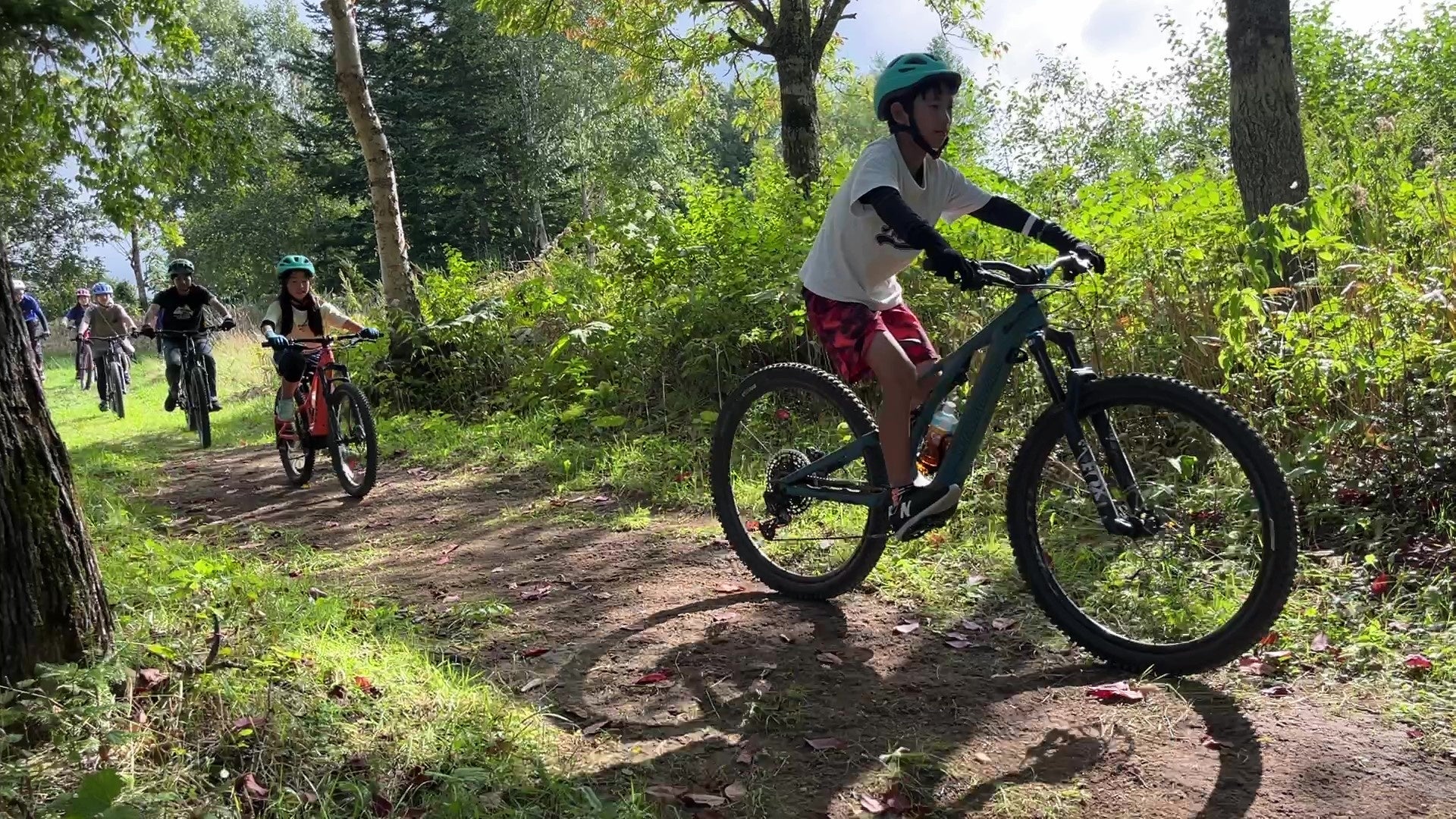 子どもたちも思う存分、初めてのマウンテンバイクを大人たちと一緒に楽しむことができました。山守人は年齢やライディングスキル問わず安全に楽しめるMTBコースの造成ができます。