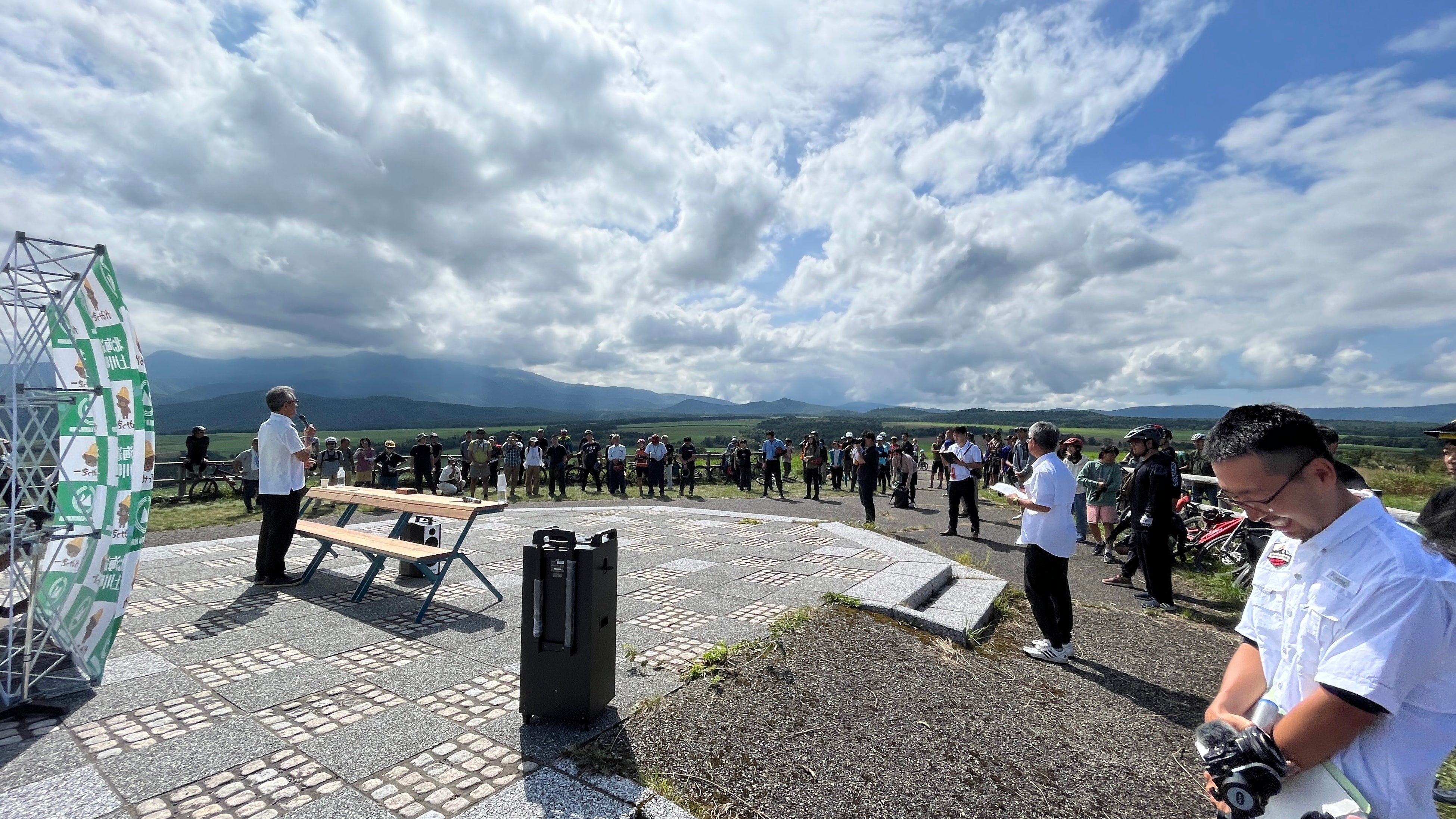 役場スタッフがこの日まで一生懸命に手作りでイベント準備をして、多くの方々にこの上川町の新たな門出を祝いつつ、素晴らしい環境を楽しんで頂こうと当日も忙しく動き回っていました。北海道運輸局、上川ファミリーオートキャンプ村を運営する株式会社KOUZUKI、ヤマハ発動機株式会社、知床サイクリングサポート、山守人のメンバーも駆け付けてスタッフとしてイベント運営のサポートにまわりました。山守人はイベント全体の準備から当日までの総合サポートを行いました。