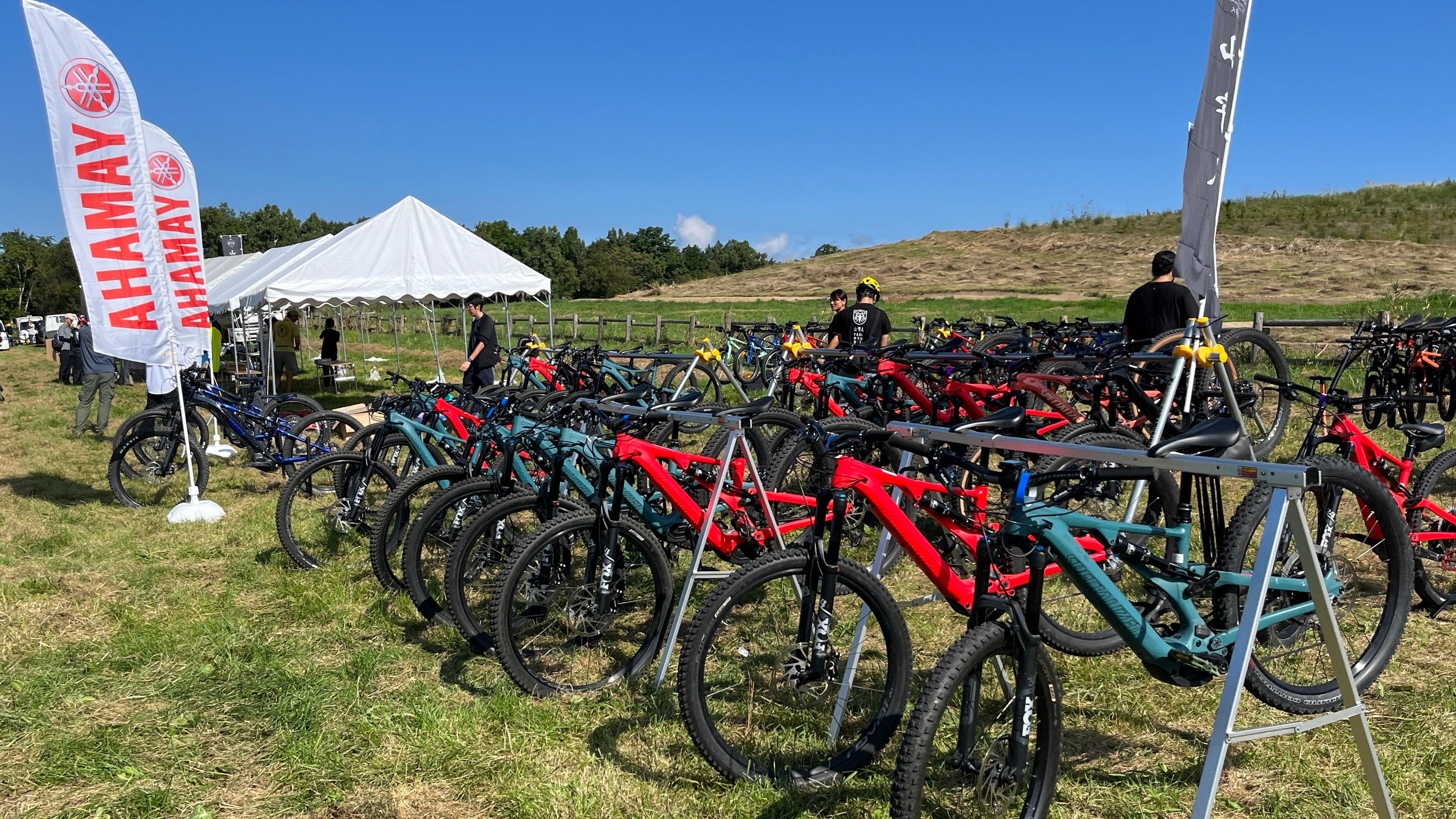 イベントには、最新のE-MTB(電動アシスト付マウンテンバイク)のYAMAHA製YPJ-MT Pro、Specialized製LEVO SL、LEVO SL Kid’sが約30台、12インチ~24インチの子供用MTBが約30台、合計約60台の本格的なMTBが集結しました。