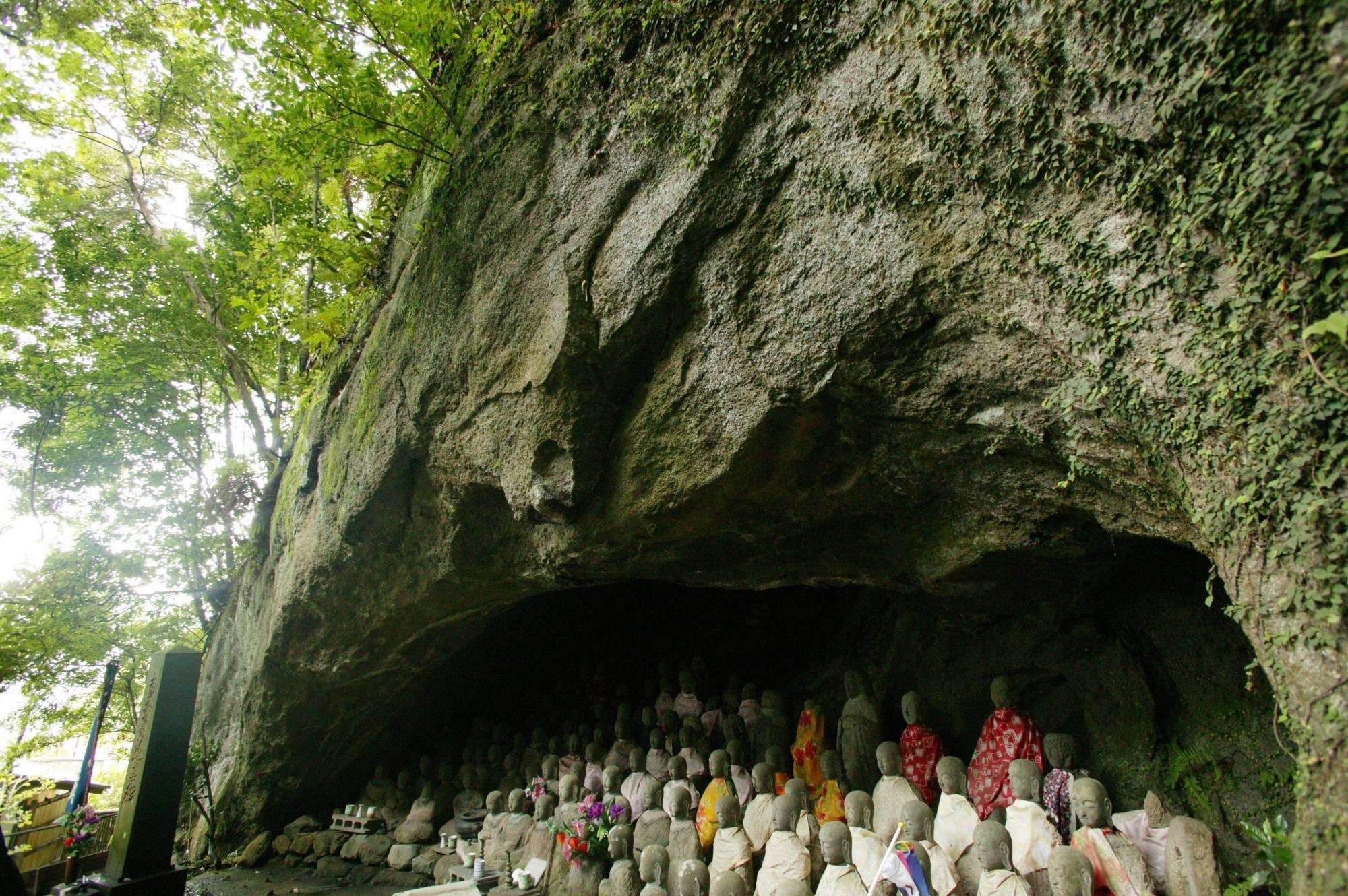御船山の森には、修験道の開祖といわれる役小角 (えんのおずぬ) が飛鳥時代に彫ったとされる高さ23mの不動尊像や、名僧行基が奈良時代、病に侵された自らの平癒を祈願し て刻んだと伝えられる釈尊像三体のほか、3年の歳月をかけて完成させたという羅漢像五百体が残されています。
