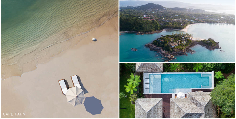 コ・サムイの北端の沖に浮かぶ私有の島にあるケープ・ファーン(Cape Fahn)では、孤島での宿泊体験を味わうことができます。22棟の1ベッドルームまたは2ベッドルームのヴィラがあり、それぞれ大きなプランジ・プールとプライベート・サンデッキがあり、ヴィラでのお食事や海辺で堪能するには十分すぎるほどのランタン・ディナーのスペースもございます。伝統的なタイの建築の影響を受けたヴィラは、天然の木と光がふんだんに使用されており、海をイメージした配色がタイ湾の景色を引き立てます。