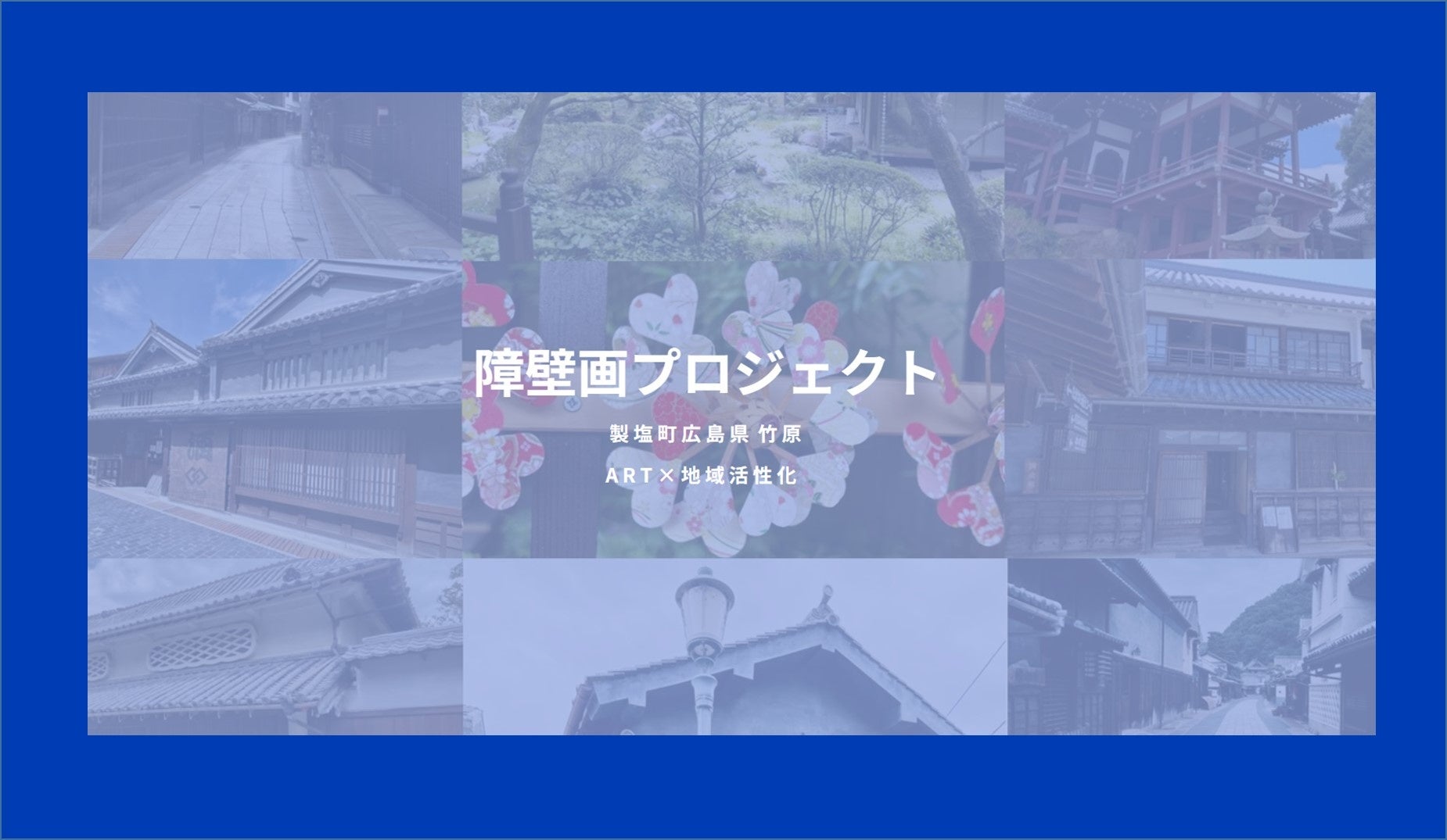 「障壁画プロジェクト」は、安芸の小京都 広島県竹原市のたけはら町並み保存地区において若手アーティストの方に障壁画の滞在制作を行っていただくことにより、若手アーティストの方には新作制作・発表の機会を、地域には障壁画作品を生み出し、作品の力を原動力に地域活性化や文化財の保全に貢献するものです。
