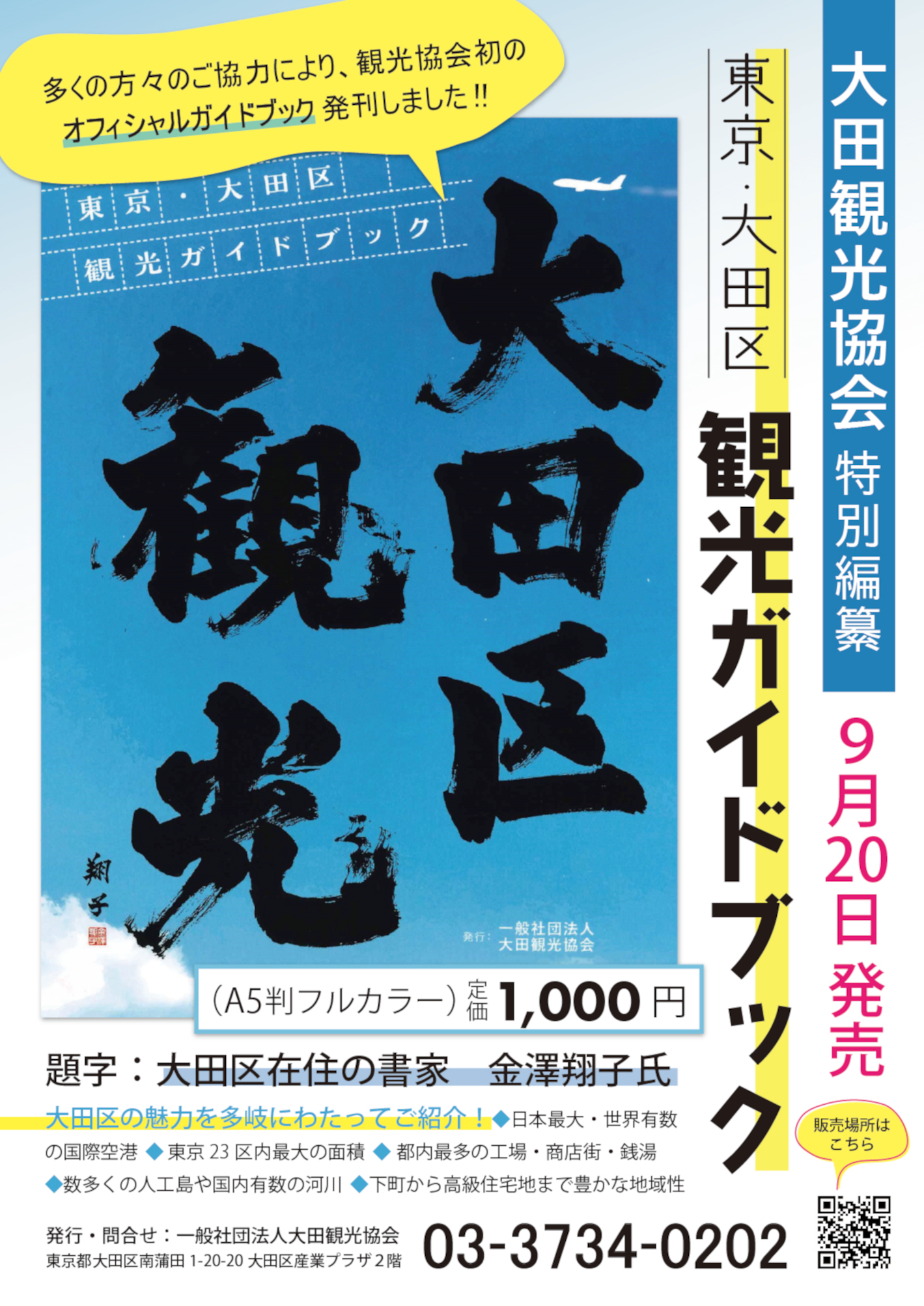 本年11月3日に設立20周年を迎える大田観光協会は、これを記念し、協会として初のオフィシャルガイドブック「東京・大田区観光ガイドブック」を発刊しました。『東京のエッセンスがすべて詰まっている』と言われる合衆国のような多様な顔を持つ大田区の魅力を、20年間で培った取材力を駆使し、大田区のヒト・モノ・コト・トコロをさまざまな切り口で紹介しています。