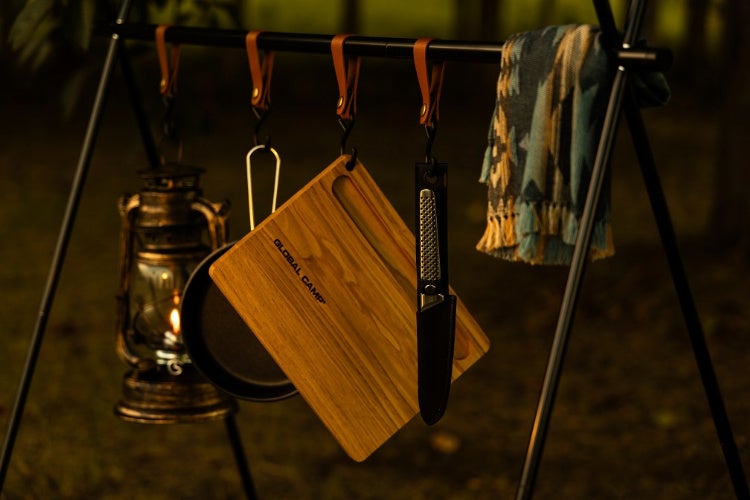 ナイフを仮置きするための溝やフック用の丸穴があり、安全性や使いやすさに配慮した設計。※単品のほか、ナイフとのセット販売あり