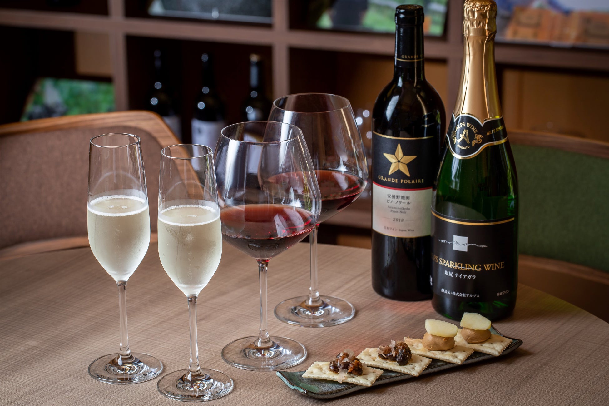 スタッフが講師となり、発酵食品について健康につながるヒントをお伝えします。信州の発酵食品の歴史や界 松本の温泉の泉質や効果的な入浴法についても説明し、滞在中に実践することができます。界 松本では、長野県桔梗ヶ原地域のワインを多く取り揃えています。スタッフ選りすぐりのワインとともに発酵食品を使用したおつまみとのマリアージュも楽しみつつ、発酵食品の知識を深めます。