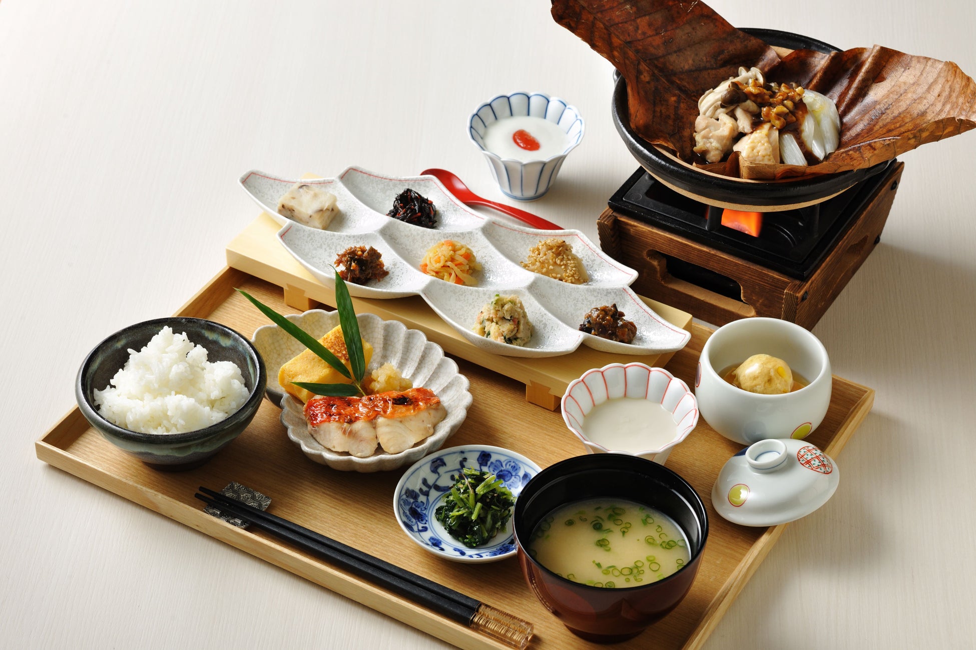 本プランの宿泊者限定で、冬の信州で親しまれてきた具材と合わせたお味噌汁を体の芯からじんわりと温める目覚めの一杯として提供します。きのこや鶏肉などにくるみ味噌を乗せた朴葉味噌の蒸し焼き、ヨーグルトにりんごのソースなど信州ならではの組み合わせを楽しむ界 松本の通常の朝食と合わせて、美味しく発酵食品を摂取することができます。