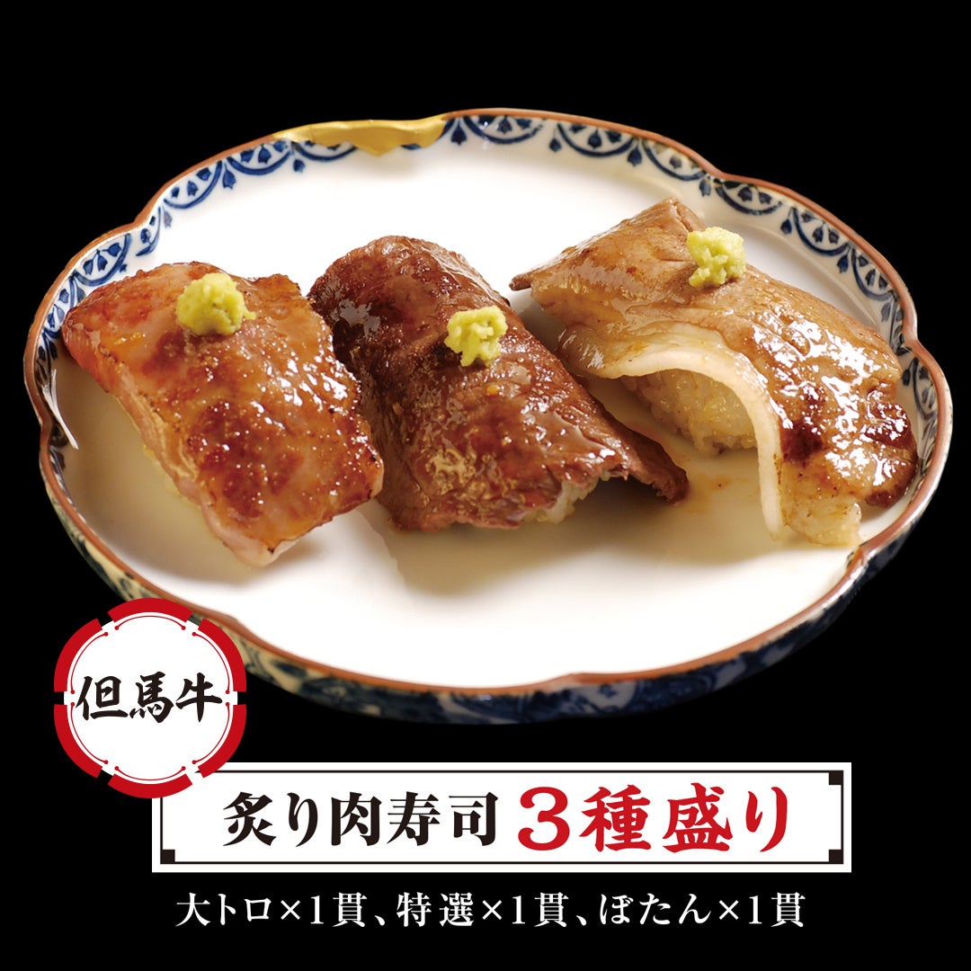 ・炙り肉寿司3種盛り(3貫) 1,300円