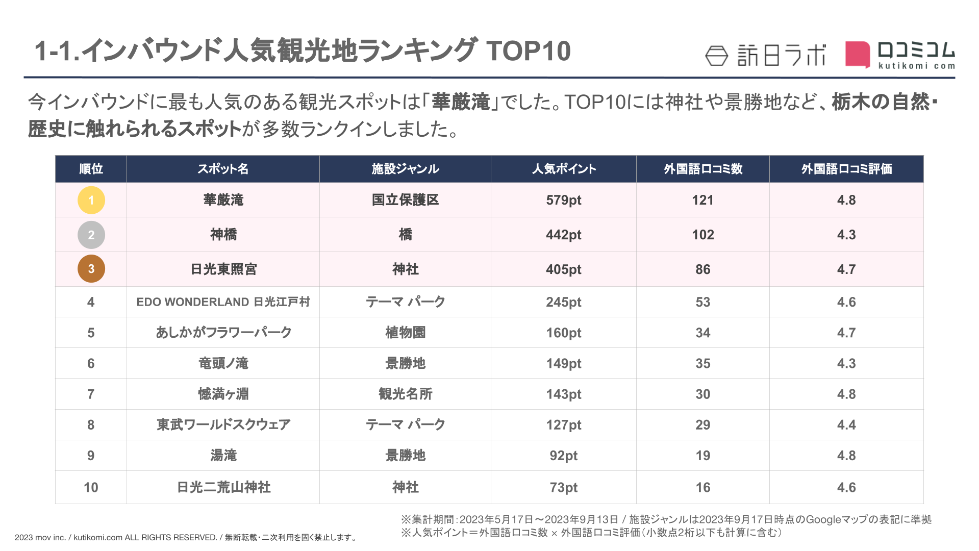 【独自調査】インバウンド人気観光地ランキング栃木編:コロナ後 最新の訪日客の支持を集めたスポットTOP10を発表 #インバウンドMEO