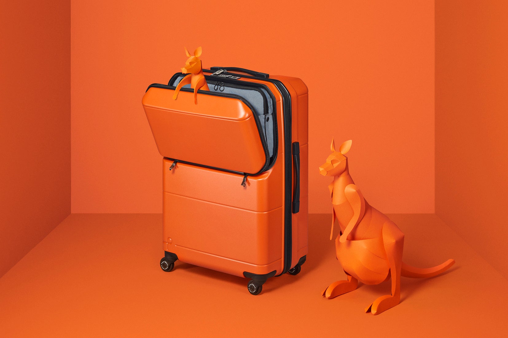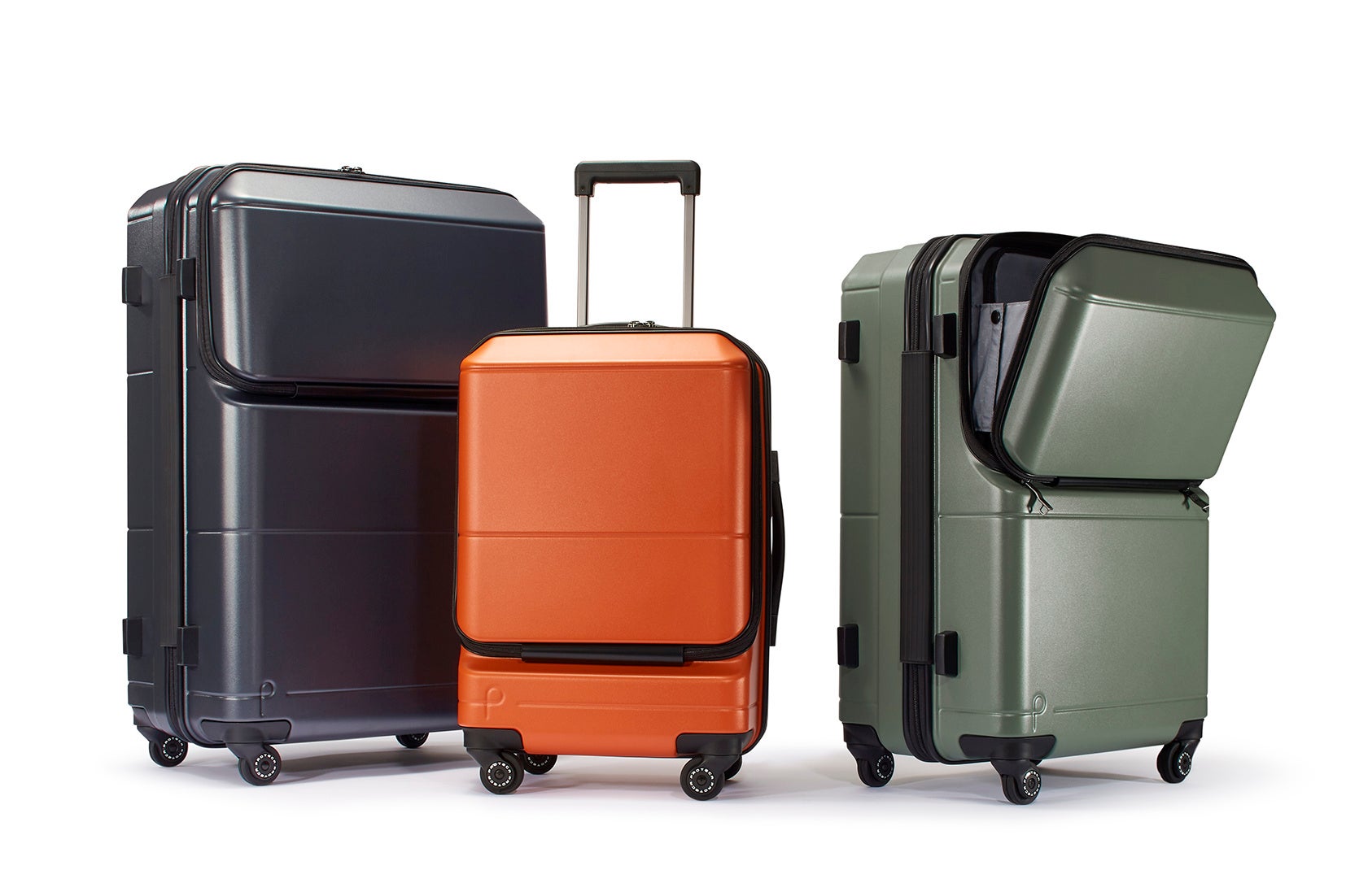 一般的な樹脂製ハードスーツケースはセンターオープン仕様のため、スーツケースを横に寝かせてから開ける必要があり、移動中は荷物を出し入れしにくいという課題がありました。「ポケットライナー」シリーズは、スーツケースを立てた状態で開け閉めできるフロントポケットを備えています。