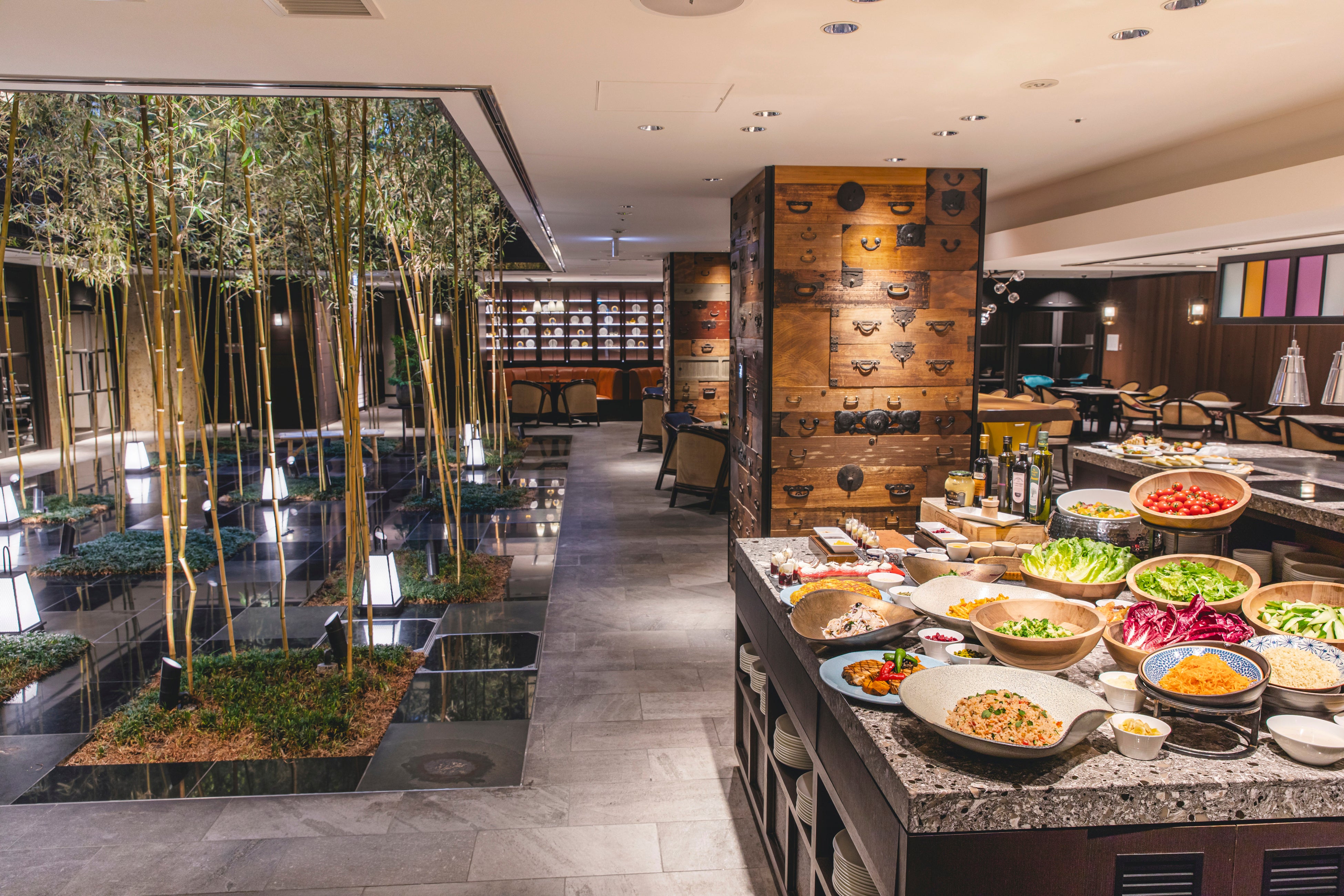 サラダや前菜はWellbeingをコンセプトに京都らしさも感じるヘルシーな食材や豆乳スムージー、デザートもビュッフェスタイルでご提供、メインディッシュはシェフ自慢のグリル料理をはじめとする8種類からお選びいただき、お席に出来立てをサーブいたします。