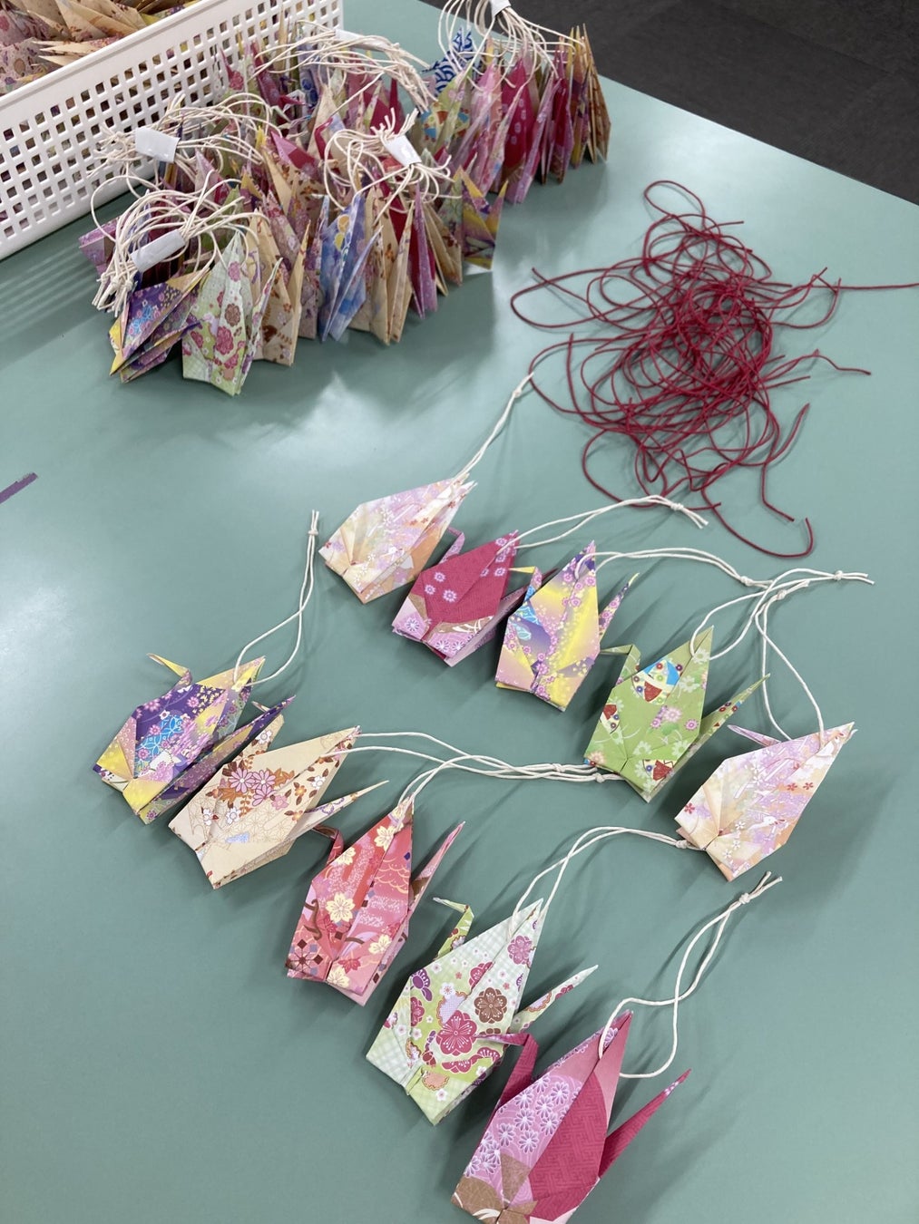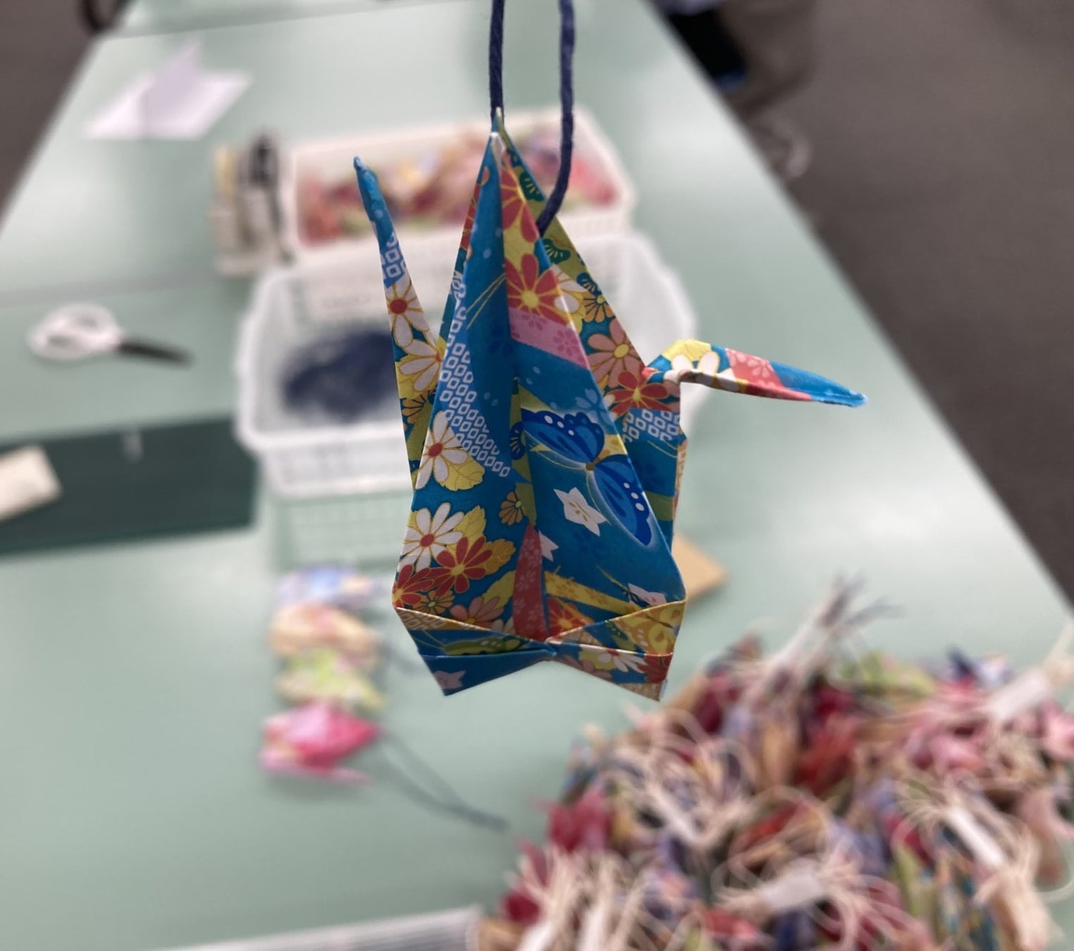 今回の“折り紙チャーム”は、紙合わせやエッジの付け方など細かな作業を伴うため、担当者ごとに紙折のパートを分けて作業を進行。単純反復作業を正確にこなし、鶴や手裏剣といった日本らしいモチーフのチャームが完成しました。メンズ館1階アクセサリーでお買い上げいただいた訪日外国人のお客さまに、日本のおもてなしの心をお届けします。