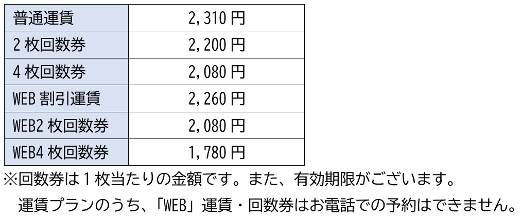 各種乗車券、回数券等も通常便と同様ご利用いただけます。