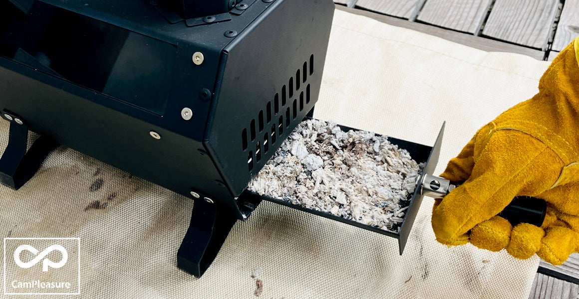 薪ストーブによってはトレーが付いていない場合もあり、本体を抱えて灰を捨てなければならないので大変ですが、キャンプレジャーの薪ストーブ本体の下部には灰受け用のトレーが付いているので、使用中や使用後の灰捨てが簡単です。